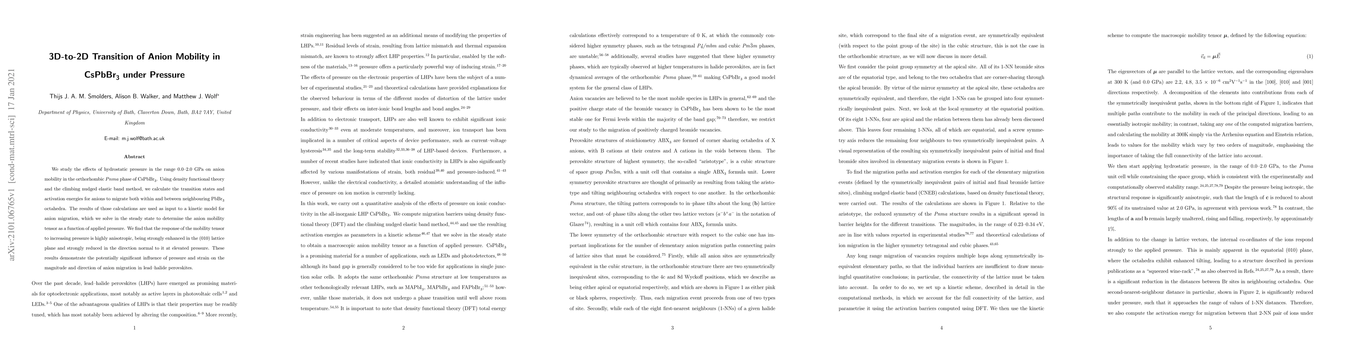 We study the effects of hydrostatic pressure in the range 0.0--2.0 GPa on anion mobility in the orthorhombic $Pnma$ phase of CsPbBr$_{3}$. Using density functional theory and the climbing nudged elastic band method, we calculate the transition states and activation energies for anions to migrate both within and between neighbouring PbBr$_{3}$ octahedra. The results of those calculations are used as input to a kinetic model for anion migration, which we solve in the steady state to determine the anion mobility tensor as a function of applied pressure. We find that the response of the mobility tensor to increasing pressure is highly anisotropic, being strongly enhanced in the $(010)$ lattice plane and strongly reduced in the direction normal to it at elevated pressure. These results demonstrate the potentially significant influence of pressure and strain on the magnitude and direction of anion migration in lead--halide perovskites.