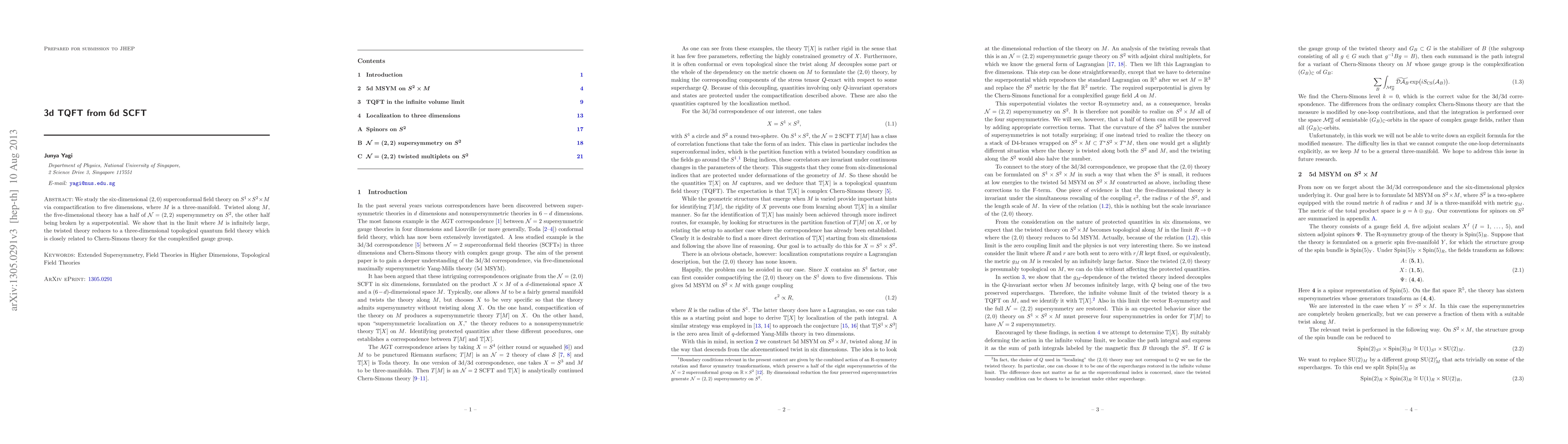 The paper presents a detailed analysis of the compactification of a six-dimensional (2,0) superconformal field theory, identifying the resulting 3d TQFT and its relation to Chern-Simons theory.
