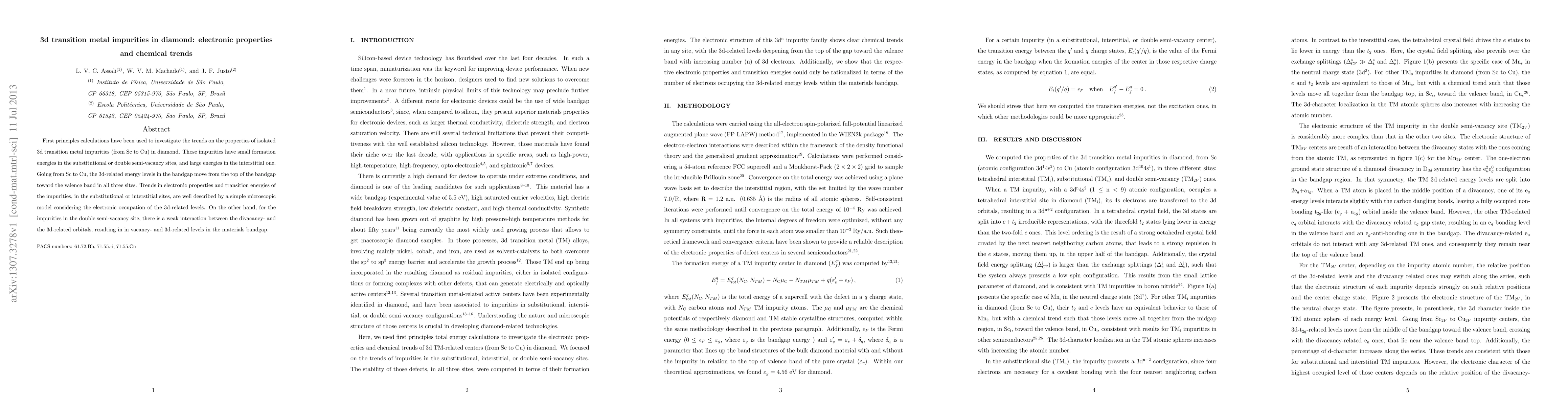 This paper uses first principles calculations to explore the electronic properties of 3d transition metal impurities in diamond, finding that their energy levels shift from the bandgap top towards the valence band as we move from Sc to Cu. The study reveals trends in electronic properties and transition energies, which are well explained by a simple microscopic model.