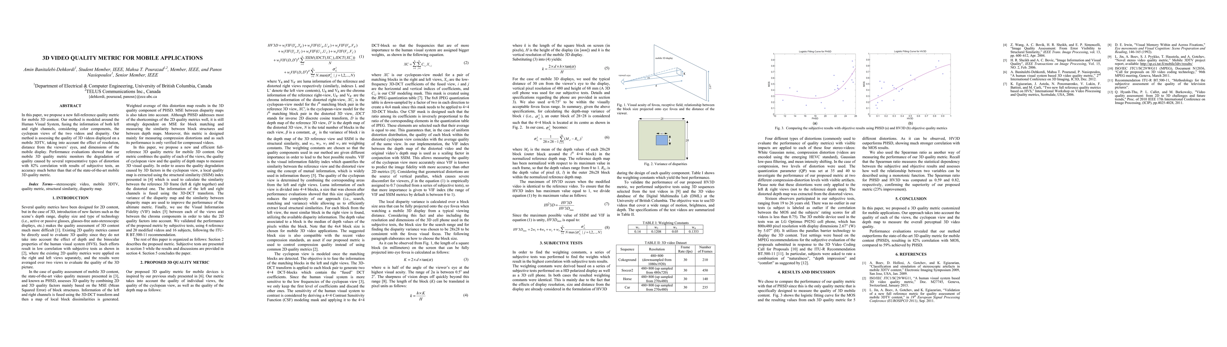 In this paper, we propose a new full-reference quality metric for mobile 3D content. Our method is modeled around the Human Visual System, fusing the information of both left and right channels, considering color components, the cyclopean views of the two videos and disparity. Our method is assessing the quality of 3D videos displayed on a mobile 3DTV, taking into account the effect of resolution, distance from the viewers eyes, and dimensions of the mobile display. Performance evaluations showed that our mobile 3D quality metric monitors the degradation of quality caused by several representative types of distortion with 82 percent correlation with results of subjective tests, an accuracy much better than that of the state of the art mobile 3D quality metric.