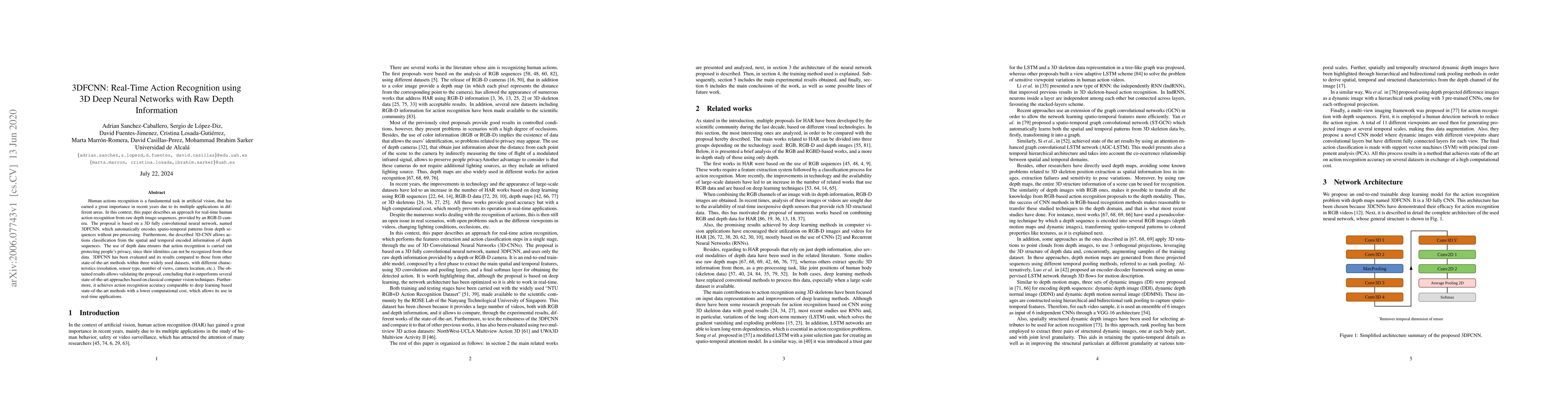 This paper proposes 3DFCNN, a 3D fully convolutional neural network for real-time human action recognition using raw depth image-sequences from RGB-D cameras. The method enables automatic feature extraction and classification without pre-processing, offering privacy-preserving action recognition and outperforming other state-of-the-art methods in accuracy while being computationally efficient for real-time applications.