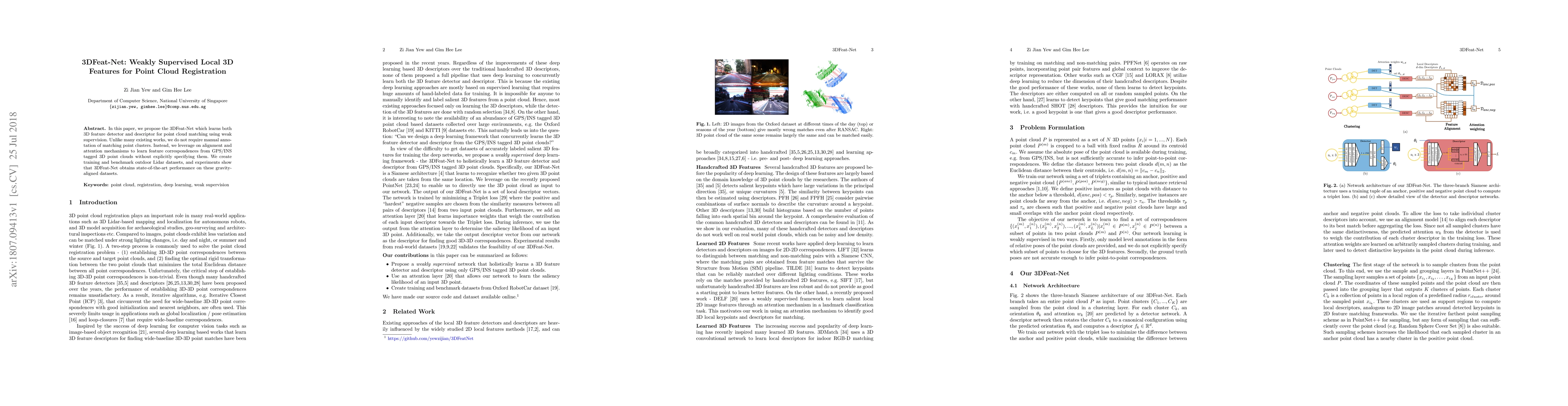 The 3DFeat-Net paper proposes a weakly supervised method for learning 3D feature detectors and descriptors from GPS/INS tagged point clouds without manual annotation. It achieves state-of-the-art performance on outdoor Lidar datasets using alignment and attention mechanisms.
