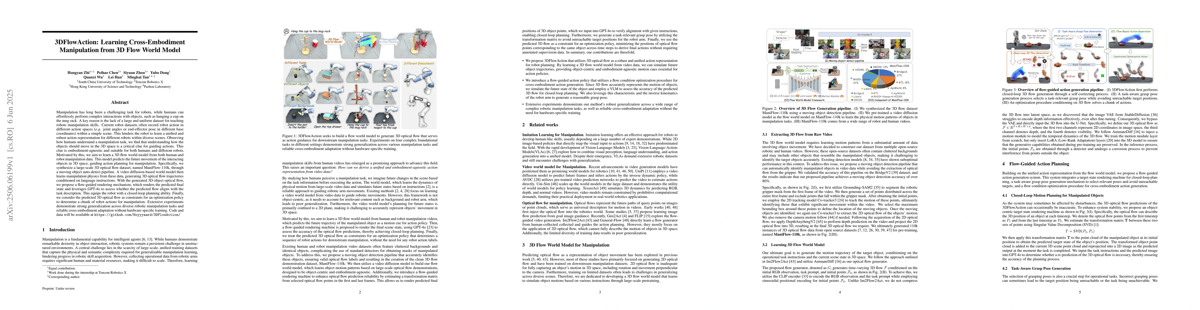 Researchers developed a 3D flow world model that enables robots to learn manipulation skills from human data, achieving strong generalization across diverse tasks without hardware-specific training.