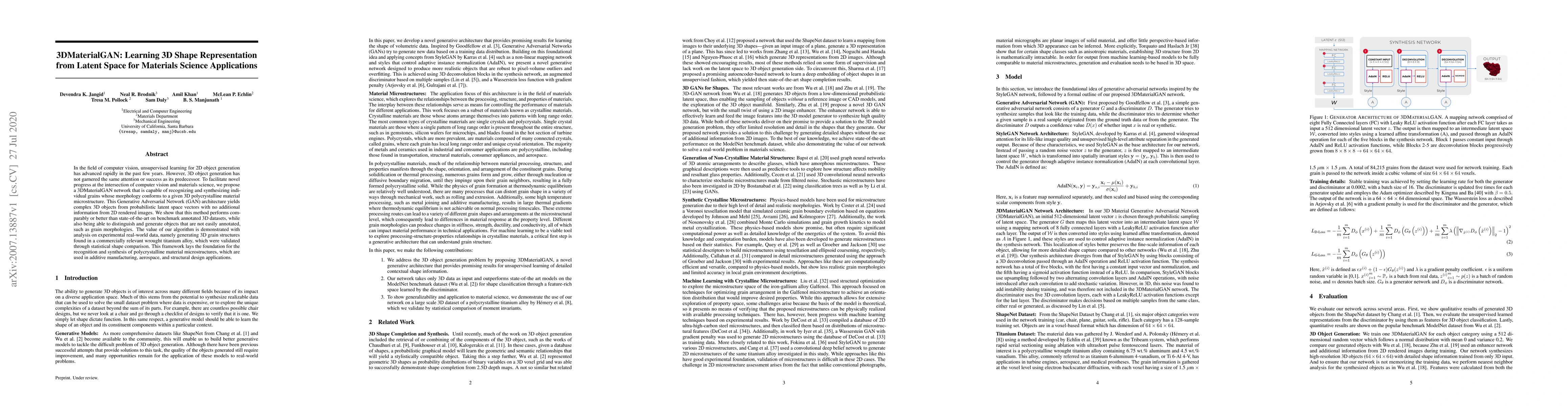 A new Generative Adversarial Network (GAN) architecture, 3DMaterialGAN, is proposed to recognize and synthesize individual grains in polycrystalline materials from latent space vectors without additional information.