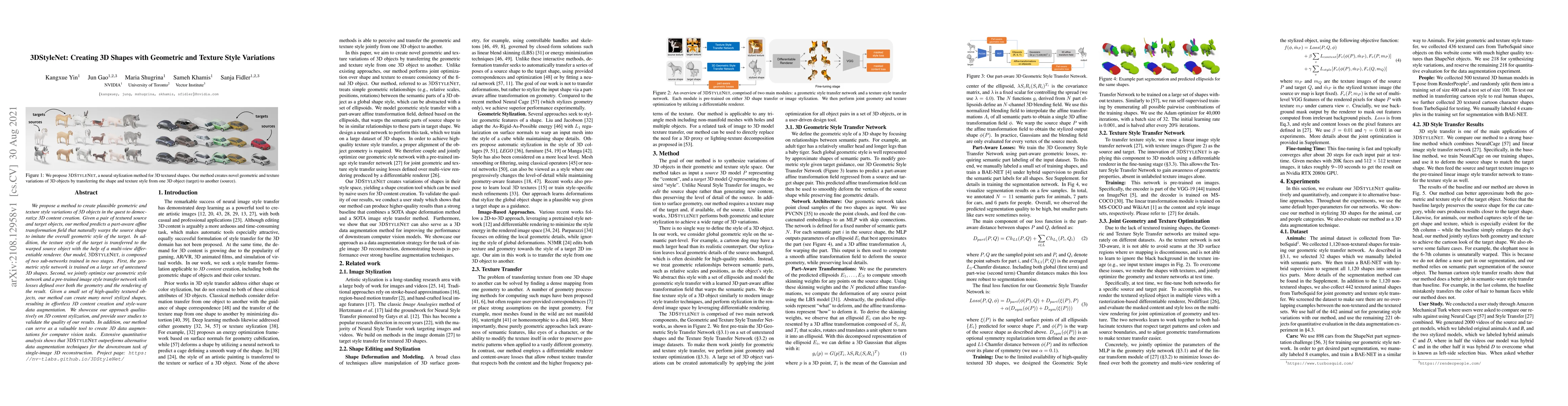 We propose a method to create plausible geometric and texture style variations of 3D objects in the quest to democratize 3D content creation. Given a pair of textured source and target objects, our method predicts a part-aware affine transformation field that naturally warps the source shape to imitate the overall geometric style of the target. In addition, the texture style of the target is transferred to the warped source object with the help of a multi-view differentiable renderer. Our model, 3DStyleNet, is composed of two sub-networks trained in two stages. First, the geometric style network is trained on a large set of untextured 3D shapes. Second, we jointly optimize our geometric style network and a pre-trained image style transfer network with losses defined over both the geometry and the rendering of the result. Given a small set of high-quality textured objects, our method can create many novel stylized shapes, resulting in effortless 3D content creation and style-ware data augmentation. We showcase our approach qualitatively on 3D content stylization, and provide user studies to validate the quality of our results. In addition, our method can serve as a valuable tool to create 3D data augmentations for computer vision tasks. Extensive quantitative analysis shows that 3DStyleNet outperforms alternative data augmentation techniques for the downstream task of single-image 3D reconstruction.