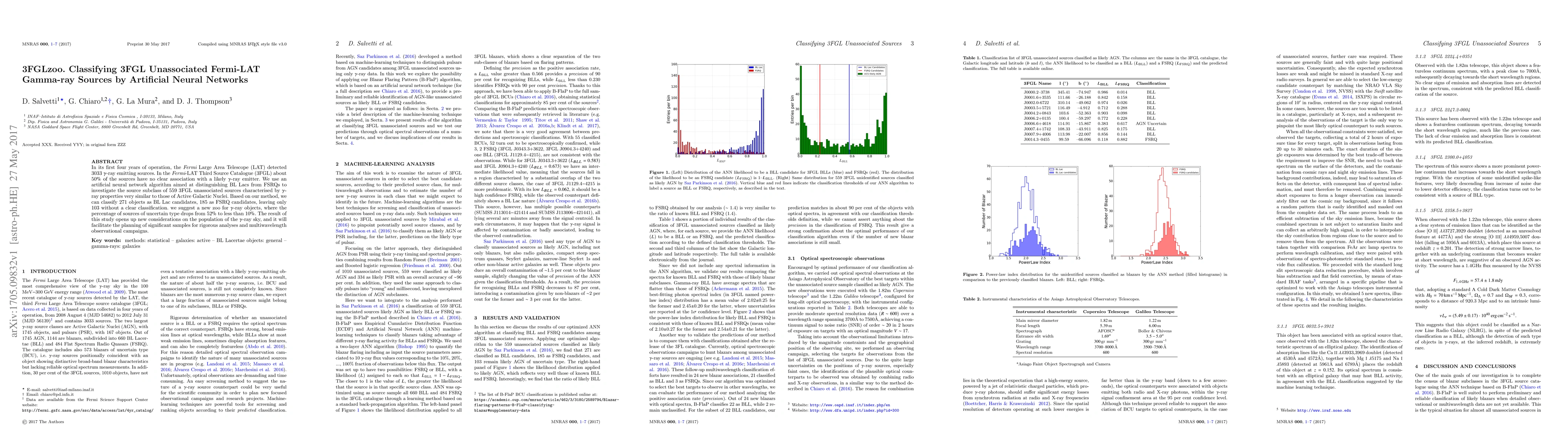 In its first four years of operation, the Fermi Large Area Telescope (LAT) detected 3033 $\gamma$-ray emitting sources. In the Fermi-LAT Third Source Catalogue (3FGL) about 50% of the sources have no clear association with a likely $\gamma$-ray emitter. We use an artificial neural network algorithm aimed at distinguishing BL Lacs from FSRQs to investigate the source subclass of 559 3FGL unassociated sources characterised by $\gamma$-ray properties very similar to those of Active Galactic Nuclei. Based on our method, we can classify 271 objects as BL Lac candidates, 185 as FSRQ candidates, leaving only 103 without a clear classification. we suggest a new zoo for $\gamma$-ray objects, where the percentage of sources of uncertain type drops from 52% to less than 10%. The result of this study opens up new considerations on the population of the $\gamma$-ray sky, and it will facilitate the planning of significant samples for rigorous analyses and multiwavelength observational campaigns.