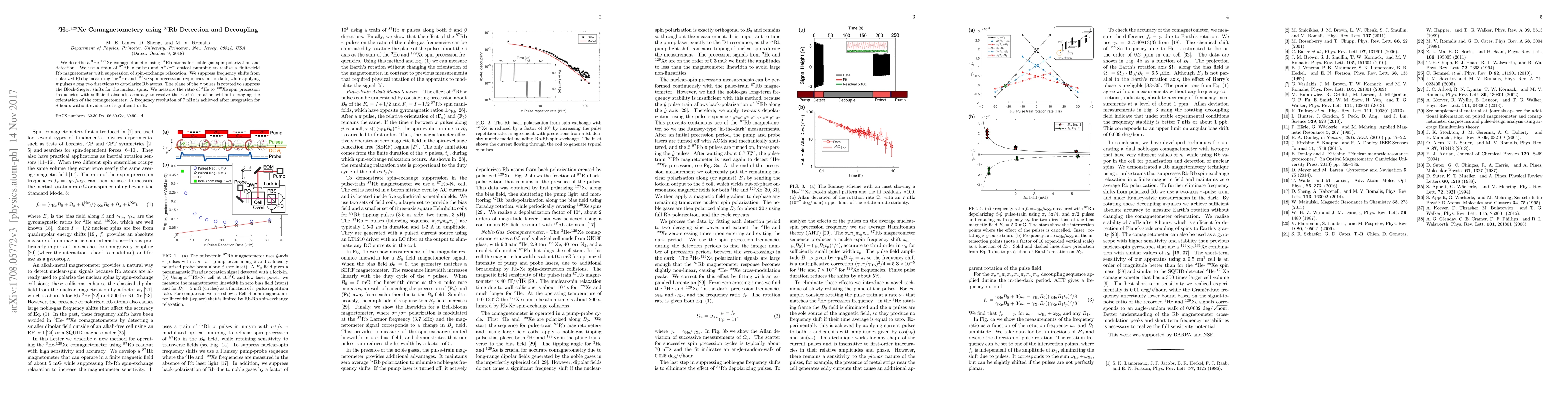 The research employs a $^{3}$He-$^{129}$Xe comagnetometer using $^{87}$Rb atoms for noble-gas spin polarization and detection. It utilizes a train of $^{87}$Rb $\pi$ pulses and $\sigma^+/\sigma^-$ optical pumping to create a finite-field Rb magnetometer with suppressed spin-exchange relaxation. The frequency shifts from polarized Rb are measured in the dark, while $\pi$ pulses along two directions depolarize Rb atoms. The Bloch-Siegert shifts for nuclear spins are suppressed by rotating the $\pi$ pulse plane.