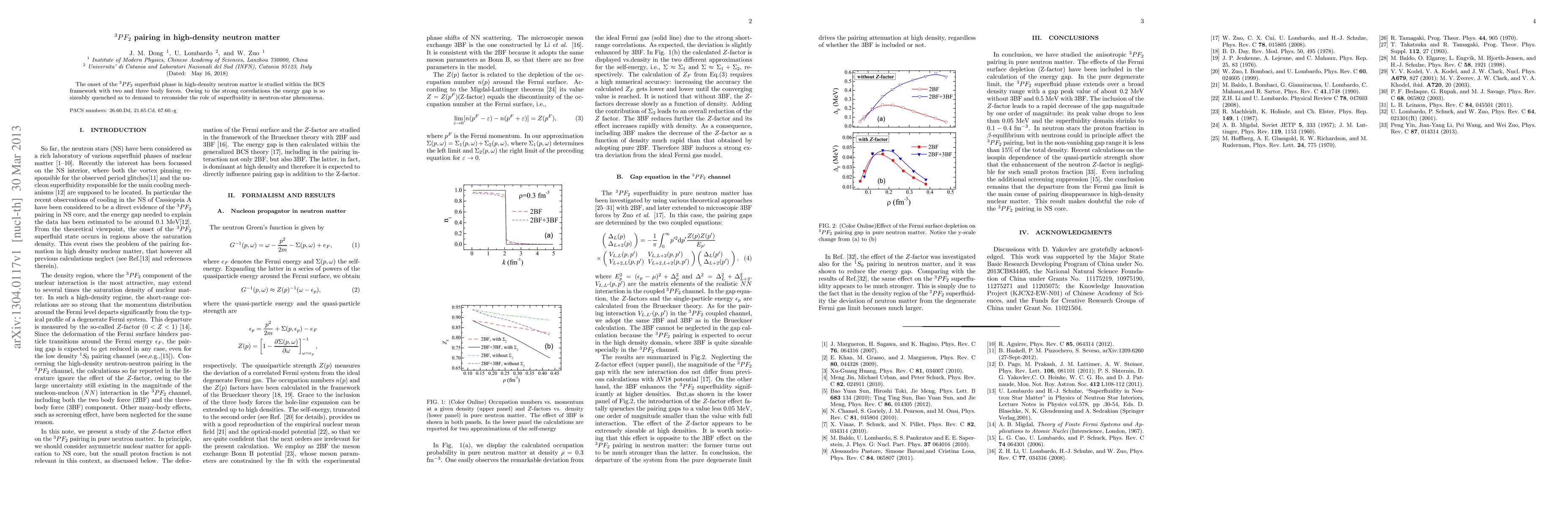 The onset of the 3PF2 superfluid phase in high-density neutron matter is studied within the BCS framework with two and three body forces. Owing to the strong correlations the energy gap is so sizeably quenched as to demand to reconsider the role of superfluidity in neutron-star phenomena.
