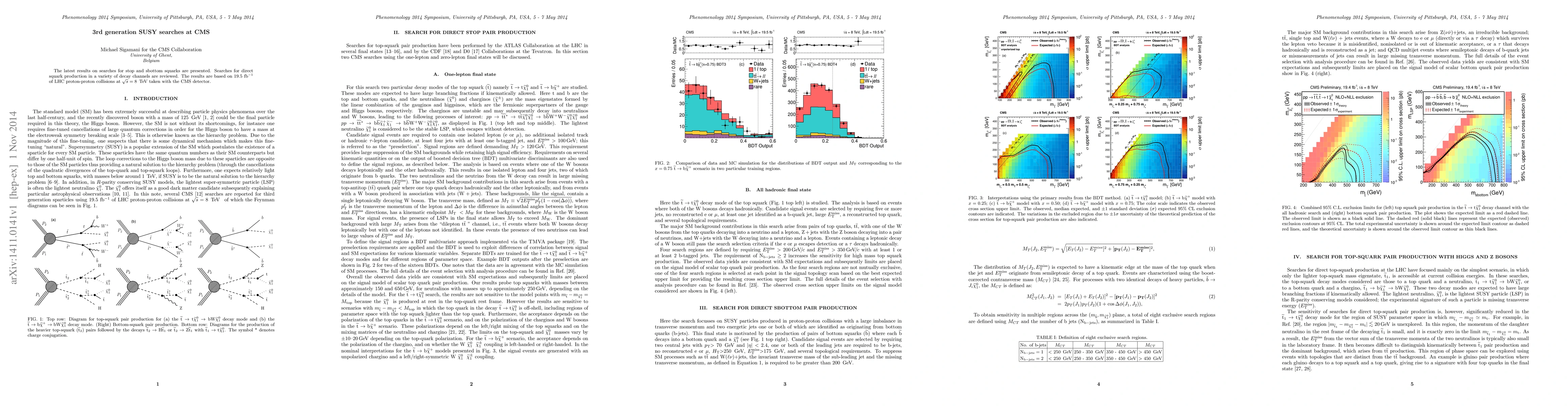 This paper reports on the latest findings from the CMS detector regarding searches for third-generation supersymmetric particles, specifically stop and sbottom squarks, using data from 19.5/fb of LHC proton-proton collisions at 8 TeV. No evidence of direct squark production was found in various decay channels.