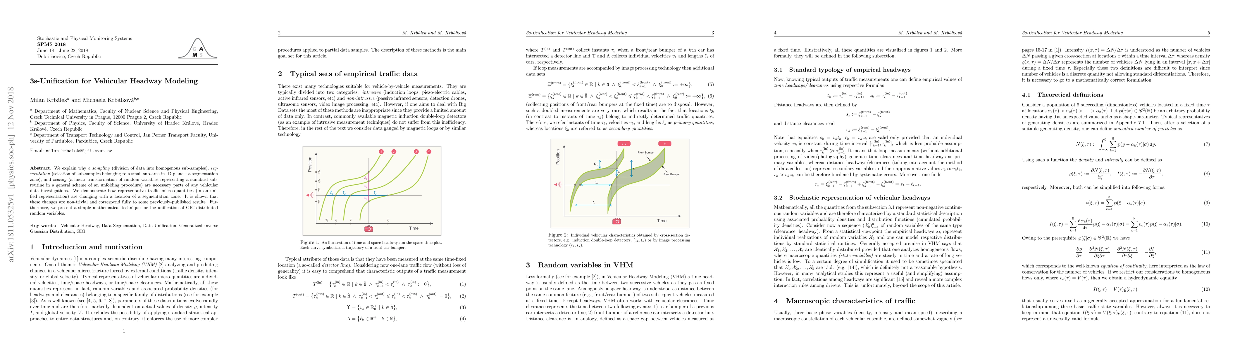 We explain why a sampling (division of data into homogenous sub-samples), segmentation (selection of sub-samples belonging to a small sub-area in ID plane - a segmentation zone), and scaling (a linear transformation of random variables representing a standard sub-routine in a general scheme of an unfolding procedure) are necessary parts of any vehicular data investigations. We demonstrate how representative traffic micro-quantities (in an unified representation) are changing with a location of a segmentation zone. It is shown that these changes are non-trivial and correspond fully to some previously-published results. Furthermore, we present a simple mathematical technique for the unification of GIG-distributed random variables.