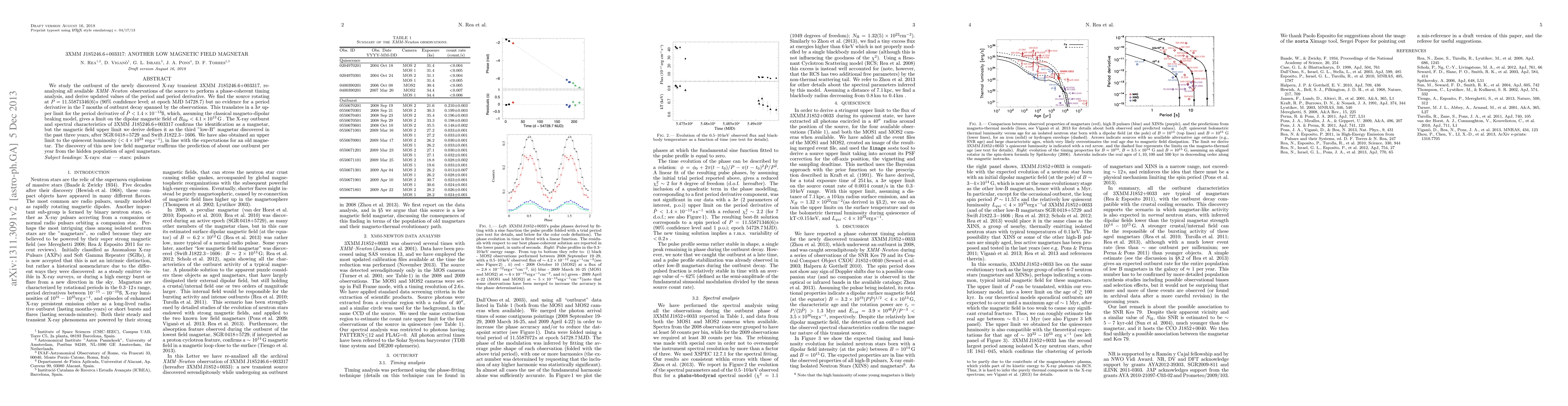 This paper identifies 3XMM J185246.6+003317 as a low magnetic field magnetar with a rotation period of 11.56 seconds, confirming its magnetar nature through X-ray outburst and spectral analysis. The derived upper limit for its magnetic field is 4.1x10^13 G, classifying it as a "low-B" magnetar.