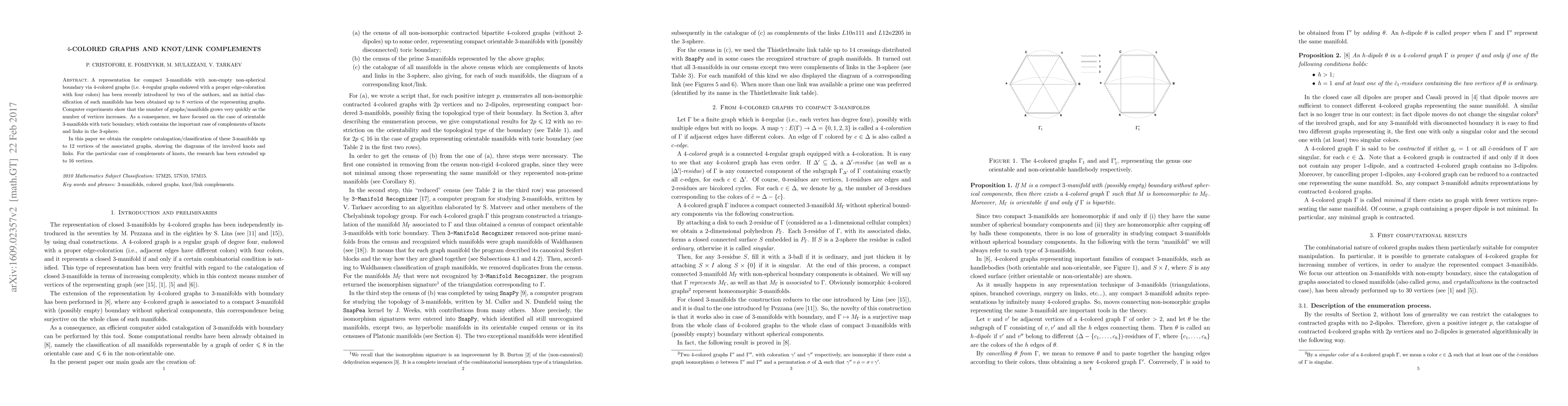 The paper presents a method for representing compact 3-manifolds with non-empty, non-spherical boundary using 4-colored graphs and develops a classification up to 12 vertices, identifying rigid graphs for further analysis.