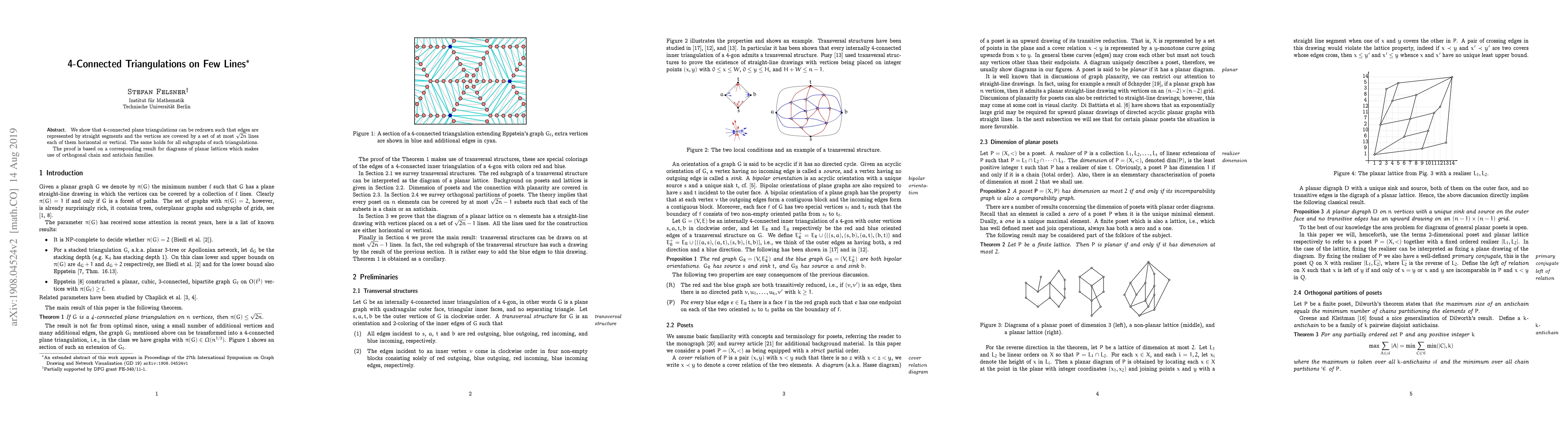 This paper demonstrates that 4-connected planar triangulations can be redrawn with straight edges, covered by no more than $\sqrt{2n}$ horizontal or vertical lines, and this property extends to their subgraphs. The proof leverages results from planar lattice diagrams and orthogonal chain and antichain families.