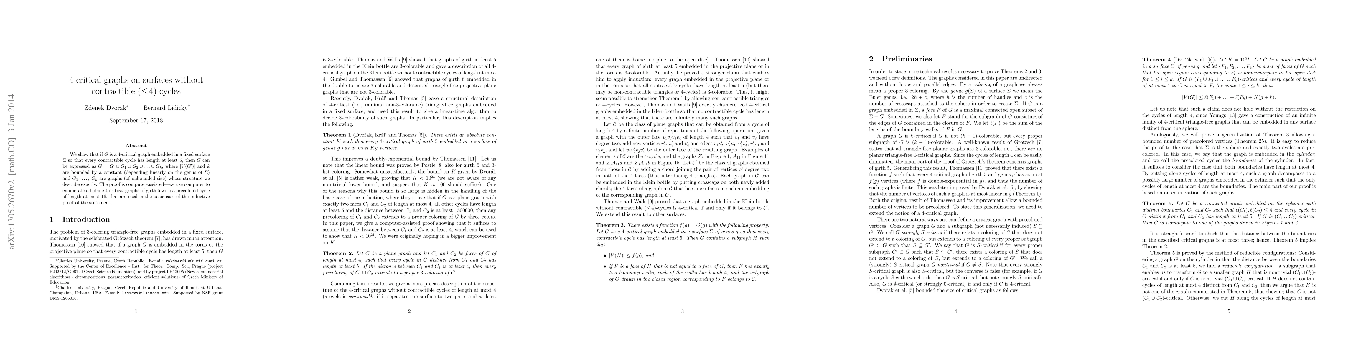Researchers show that 4-critical graphs on surfaces with certain restrictions can be decomposed into smaller graphs, offering insights into graph structure and surface topology.