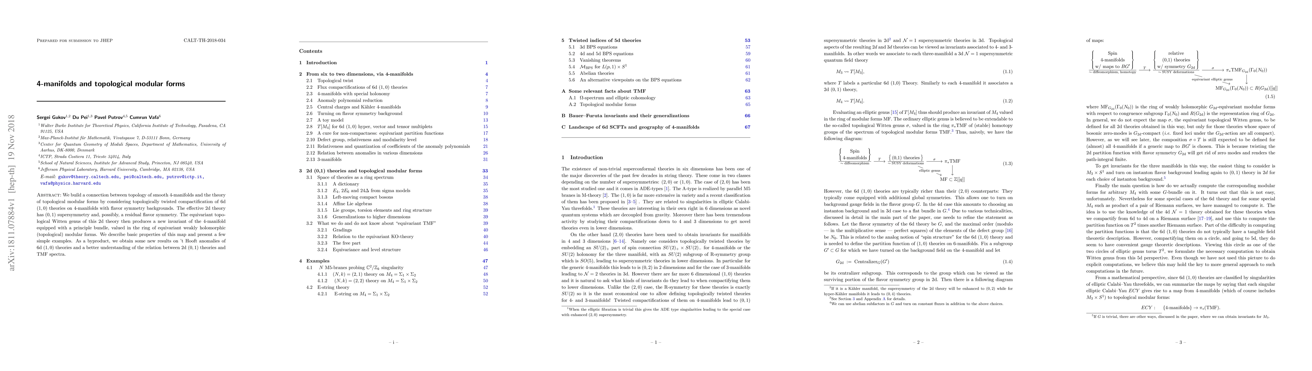 This paper establishes a link between the topology of smooth 4-manifolds and topological modular forms through the study of twisted compactifications of 6d (1,0) theories, introducing a new invariant for 4-manifolds with a principal bundle. It also contributes to understanding 't Hooft anomalies and the connection between 2d (0,1) theories and TMF spectra.