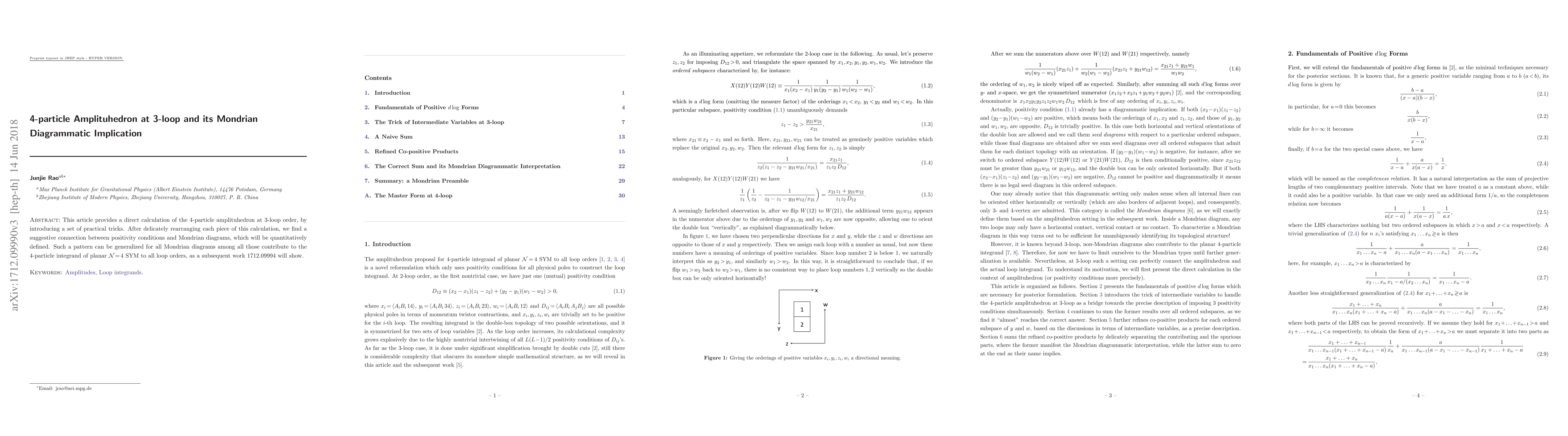 This article provides a direct calculation of the 4-particle amplituhedron at 3-loop order, by introducing a set of practical tricks. After delicately rearranging each piece of this calculation, we find a suggestive connection between positivity conditions and Mondrian diagrams, which will be quantitatively defined. Such a pattern can be generalized for all Mondrian diagrams among all those contribute to the 4-particle integrand of planar N=4 SYM to all loop orders, as a subsequent work 1712.09994 will show.