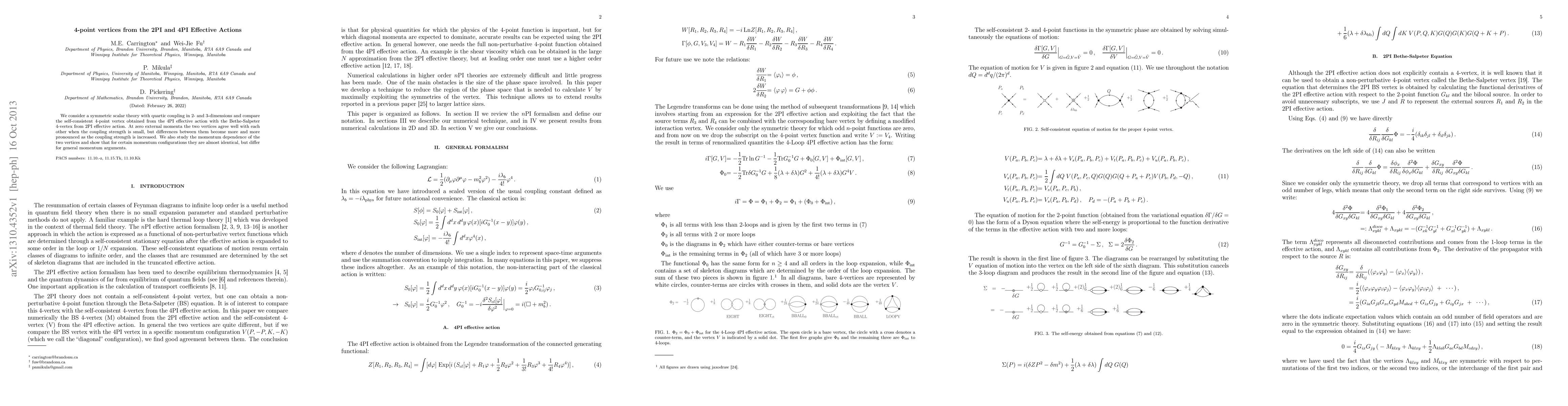 This paper compares the 4-point vertices derived from the 4PI and 2PI effective actions for a symmetric scalar theory with quartic coupling in 2 and 3 dimensions, finding that while they agree at zero external momenta for small coupling, they diverge as coupling increases and differ in their momentum dependence.