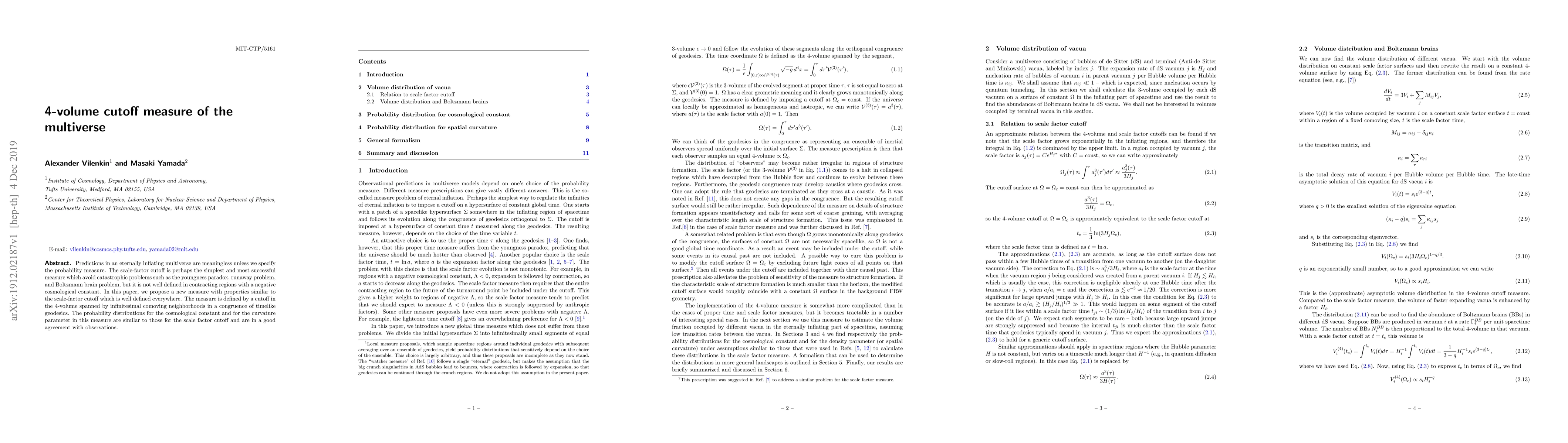 This paper proposes a new multiverse measure based on a 4-volume cutoff, offering a well-defined alternative to the scale-factor cutoff in contracting regions. It resolves issues like the youngness paradox and aligns probability distributions for cosmological constants and curvature parameters with observational data.