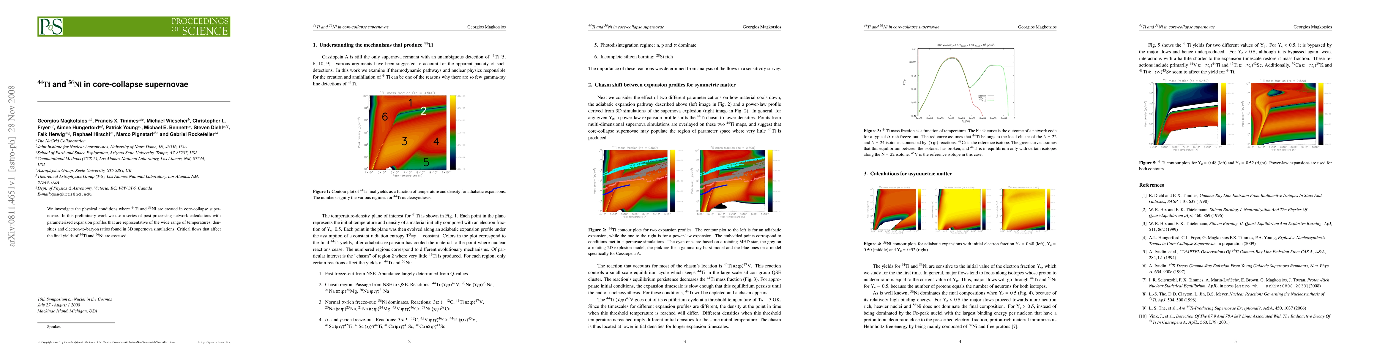 We investigate the physical conditions where 44Ti and 56Ni are created in core-collapse supernovae. In this preliminary work we use a series of post-processing network calculations with parametrized expansion profiles that are representative of the wide range of temperatures, densities and electron-to-baryon ratios found in 3D supernova simulations. Critical flows that affect the final yields of 44Ti and 56Ni are assessed.