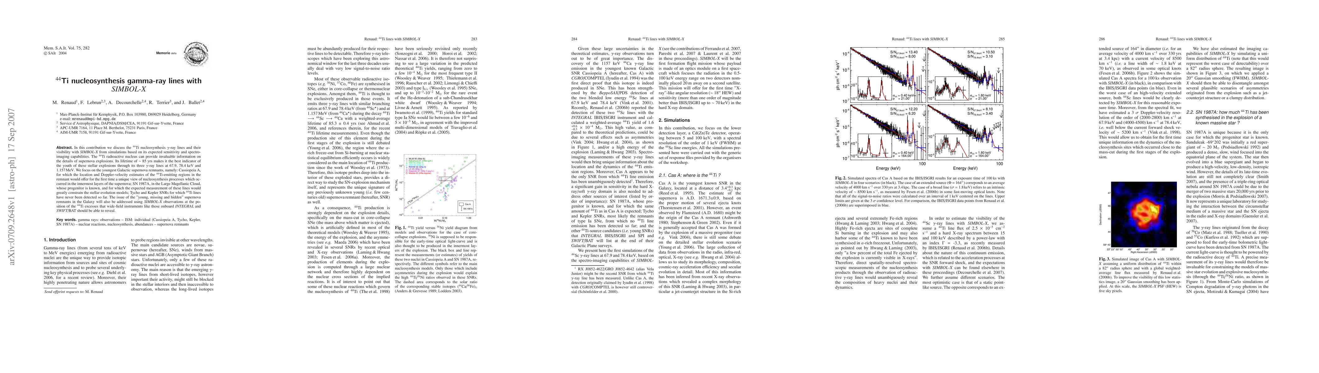 In this contribution we discuss the 44Ti nucleosynthesis gamma-ray lines and their visibility with SIMBOL-X from simulations based on its expected sensitivity and spectro-imaging capabilities. The 44Ti radioactive nucleus can provide invaluable information on the details of supernova explosions. Its lifetime of about 85 yrs makes it the best indicator of the youth of these stellar explosions through its three gamma-ray lines at 67.9, 78.4 keV and 1.157 MeV. We focus on the youngest Galactic supernova remnants, namely: Cassiopeia A, for which the location and Doppler-velocity estimates of the 44Ti-emitting regions in the remnant would offer for the first time a unique view of nucleosynthesis processes which occurred in the innermost layers of the supernova; SN 1987A, in the Large Magellanic Cloud, whose progenitor is known, and for which the expected measurement of these lines would greatly constrain the stellar evolution models; Tycho and Kepler SNRs for which 44Ti lines have never been detected so far. The issue of the "young, missing and hidden" supernova remnants in the Galaxy will also be addressed using SIMBOL-X observations at the position of the 44Ti excesses that wide-field instruments like those onboard INTEGRAL and SWIFT/BAT should be able to reveal.