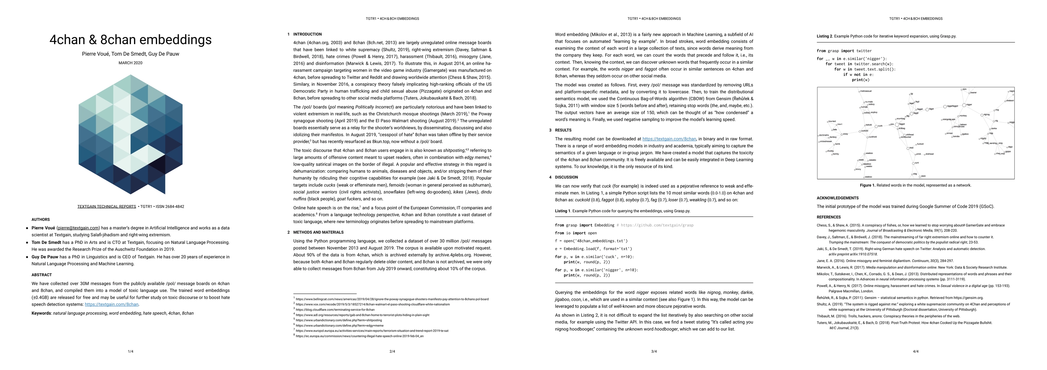 We have collected over 30M messages from the publicly available /pol/ message boards on 4chan and 8chan, and compiled them into a model of toxic language use. The trained word embeddings (0.4GB) are released for free and may be useful for further study on toxic discourse or to boost hate speech detection systems: https://textgain.com/8chan.