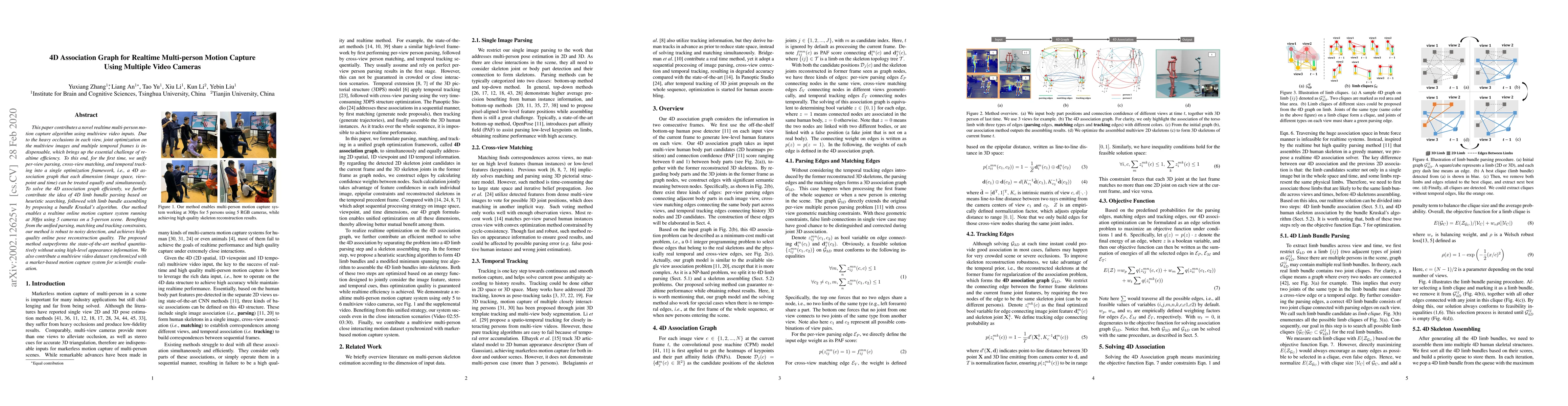 This paper presents a realtime multi-person motion capture algorithm using multiview video inputs, employing a 4D association graph to unify per-view parsing, cross-view matching, and temporal tracking. The method achieves 30fps with 5 cameras and outperforms existing techniques without using high-level appearance information.