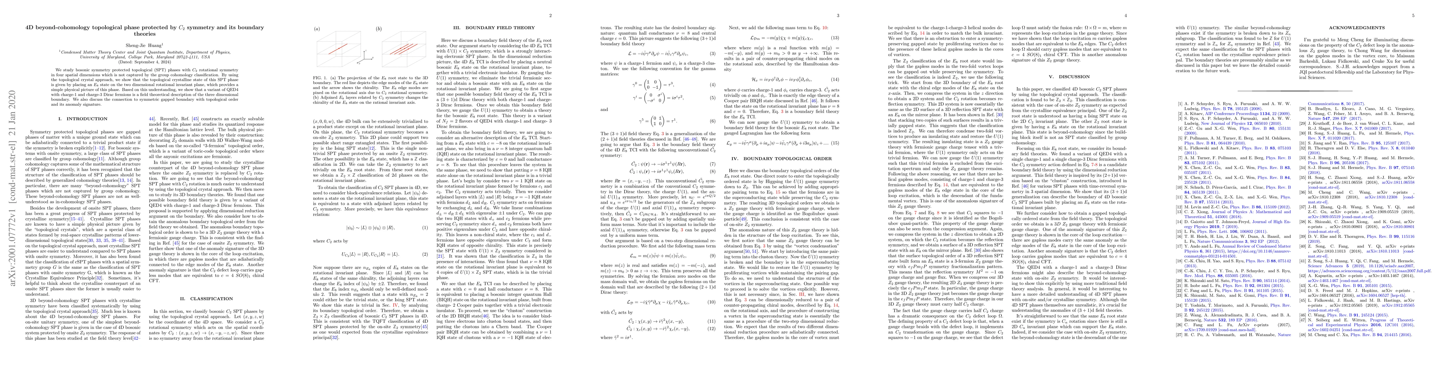 This paper explores a novel 4D bosonic symmetry protected topological phase protected by $C_2$ symmetry, beyond conventional group cohomology classification. It utilizes topological crystal theory to describe this phase, revealing an $E_8$ state on a rotational invariant plane, and identifies a variant of QED4 with specific fermions as a boundary theory description.