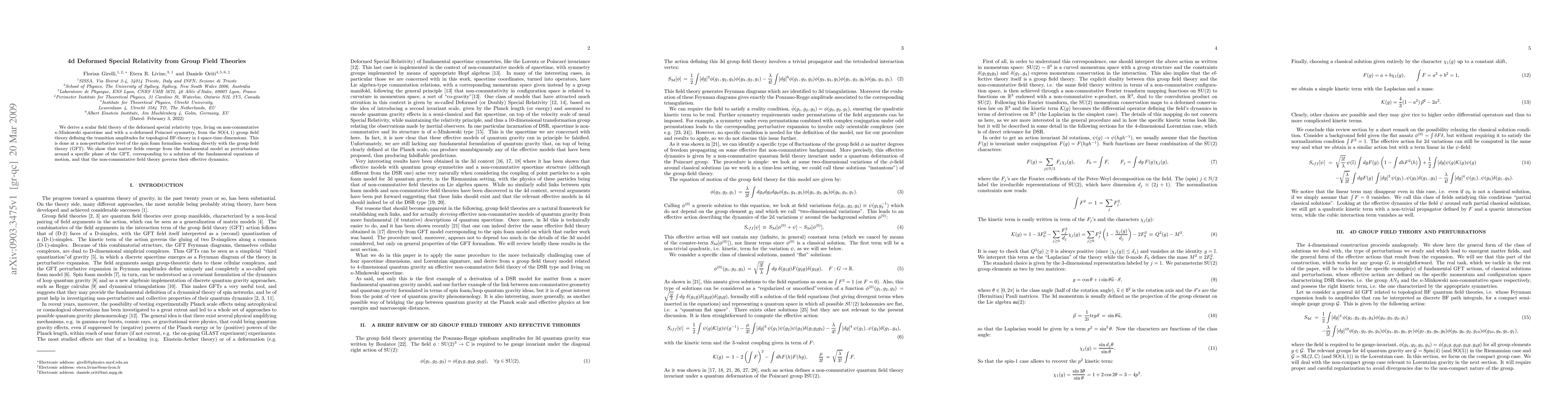 This paper derives a scalar field theory of deformed special relativity from SO(4,1) group field theory, showing that matter fields emerge as perturbations in a non-commutative kappa-Minkowski spacetime with kappa-deformed Poincare symmetry. The derivation is performed non-perturbatively using the spin foam formalism.
