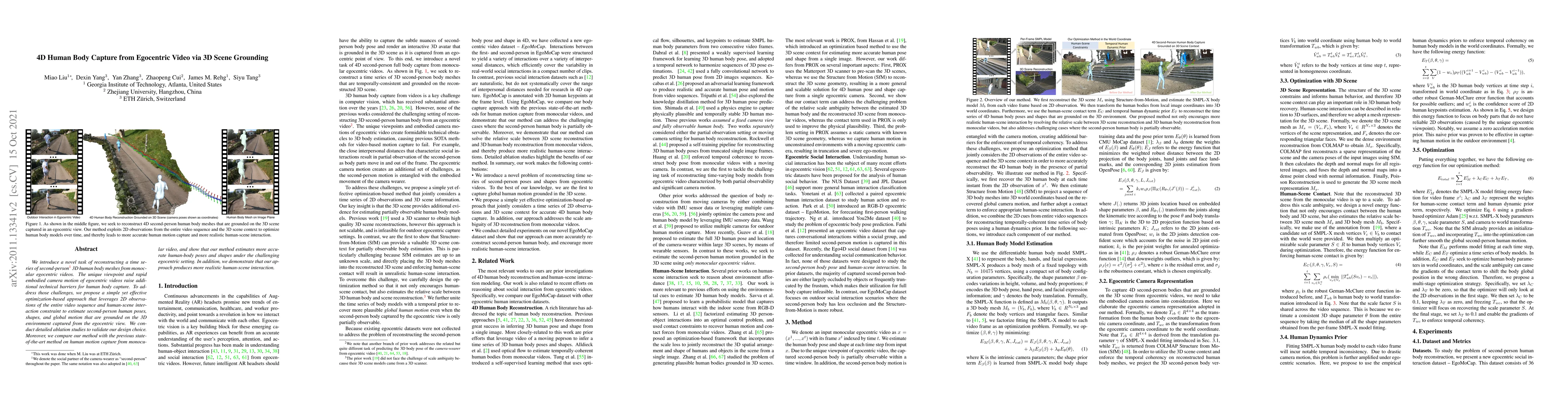 This paper proposes a novel optimization-based approach to reconstruct 4D human body meshes from monocular egocentric videos, leveraging 2D observations and human-scene interaction constraints. The method outperforms previous state-of-the-art techniques in estimating accurate human poses, shapes, and realistic human-scene interaction.