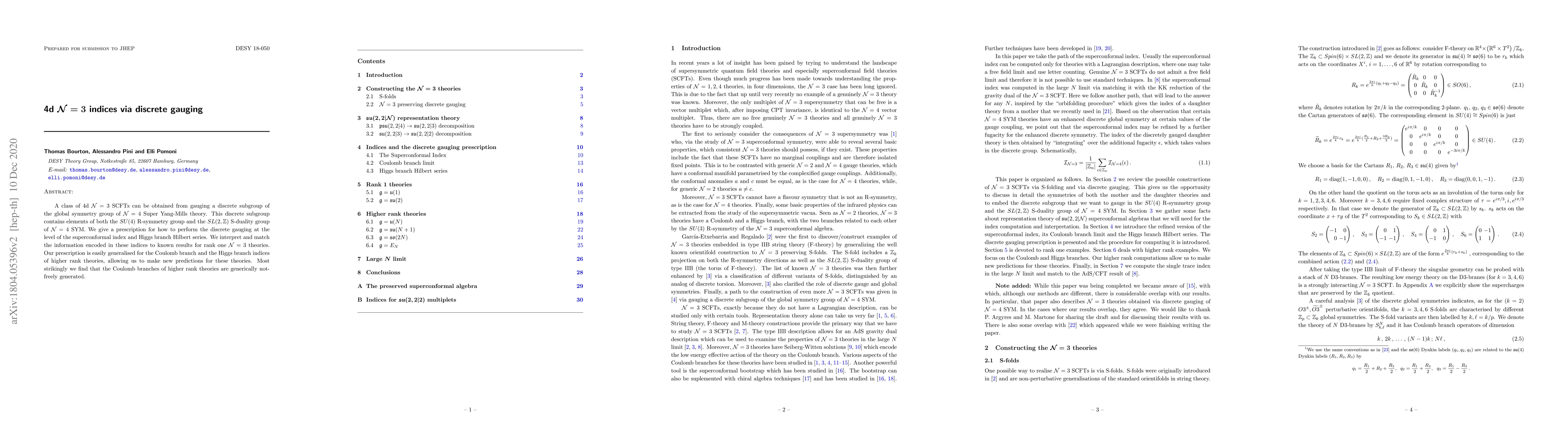 A class of 4d $\mathcal{N}=3$ SCFTs can be obtained from gauging a discrete subgroup of the global symmetry group of $\mathcal{N}=4$ Super Yang-Mills theory. This discrete subgroup contains elements of both the $SU(4)$ R-symmetry group and the $SL(2,\mathbb{Z})$ S-duality group of $\mathcal{N}=4$ SYM. We give a prescription for how to perform the discrete gauging at the level of the superconformal index and Higgs branch Hilbert series. We interpret and match the information encoded in these indices to known results for rank one $\mathcal{N}=3$ theories. Our prescription is easily generalised for the Coloumb branch and the Higgs branch indices of higher rank theories, allowing us to make new predictions for these theories. Most strikingly we find that the Coulomb branches of higher rank theories are generically not-freely generated.