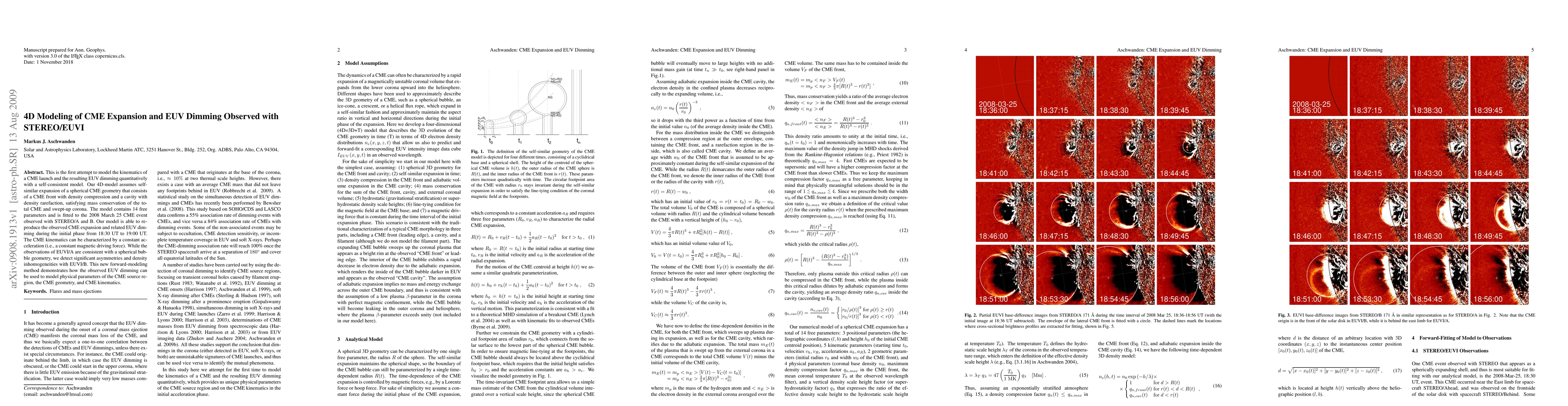 This paper presents a self-consistent 4D model to quantitatively analyze the kinematics of a CME launch and the resulting EUV dimming observed with STEREO/EUVI. The model fits a spherical CME geometry with a constant acceleration, successfully reproducing the observed expansion and dimming, while revealing asymmetries and density inhomogeneities.