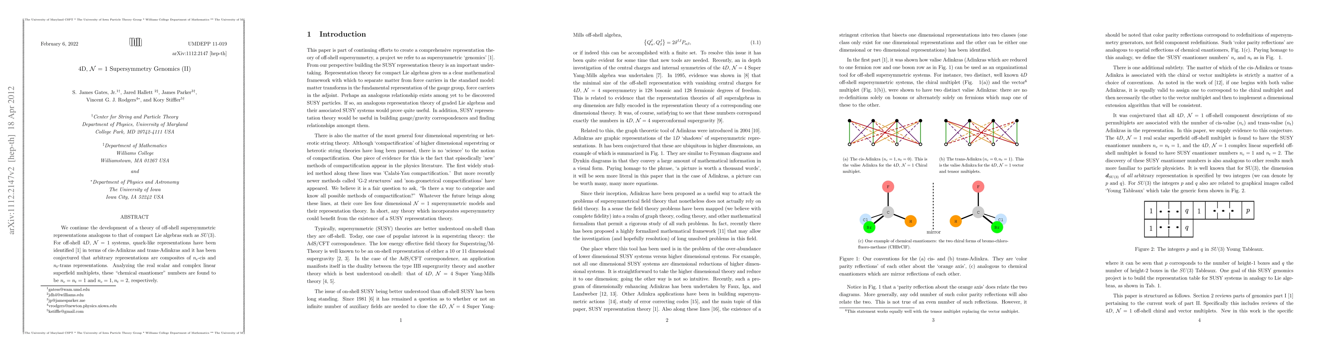 We continue the development of a theory of off-shell supersymmetric representations analogous to that of compact Lie algebras such as SU(3). For off-shell 4D, N = 1 systems, quark-like representations have been identified [1] in terms of cis-Adinkras and trans-Adinkras and it has been conjectured that arbitrary representations are composites of $n_c$-cis and $n_t$-trans representations. Analyzing the real scalar and complex linear superfield multiplets, these "chemical enantiomer" numbers are found to be $n_c$ = $n_t$ = 1 and $n_c$ = 1, $n_t$ = 2, respectively.
