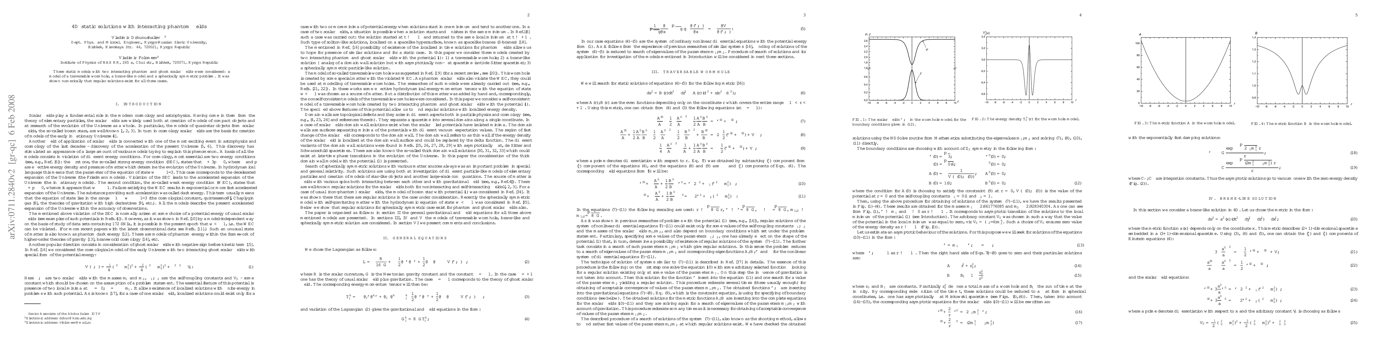 This paper investigates three static models—a traversable wormhole, a brane-like model, and a spherically symmetric problem—featuring two interacting phantom and ghost scalar fields. Numerical results demonstrate the existence of regular solutions in all considered cases.