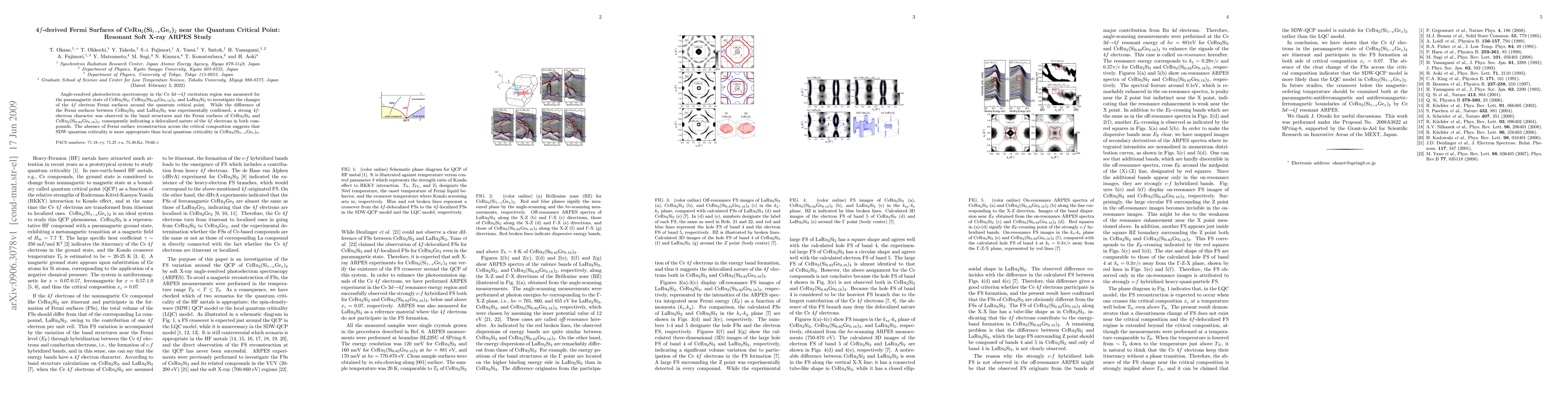 The research utilized Angle-resolved photoelectron spectroscopy to examine CeRu2(Si[1-x]Ge[x])2 near its quantum critical point. It confirmed the 4f electron Fermi surfaces' changes, revealing a delocalized nature of 4f electrons in CeRu2Si2 and CeRu2(Si0.82Ge0.18)2, suggesting SDW quantum criticality over local quantum criticality.