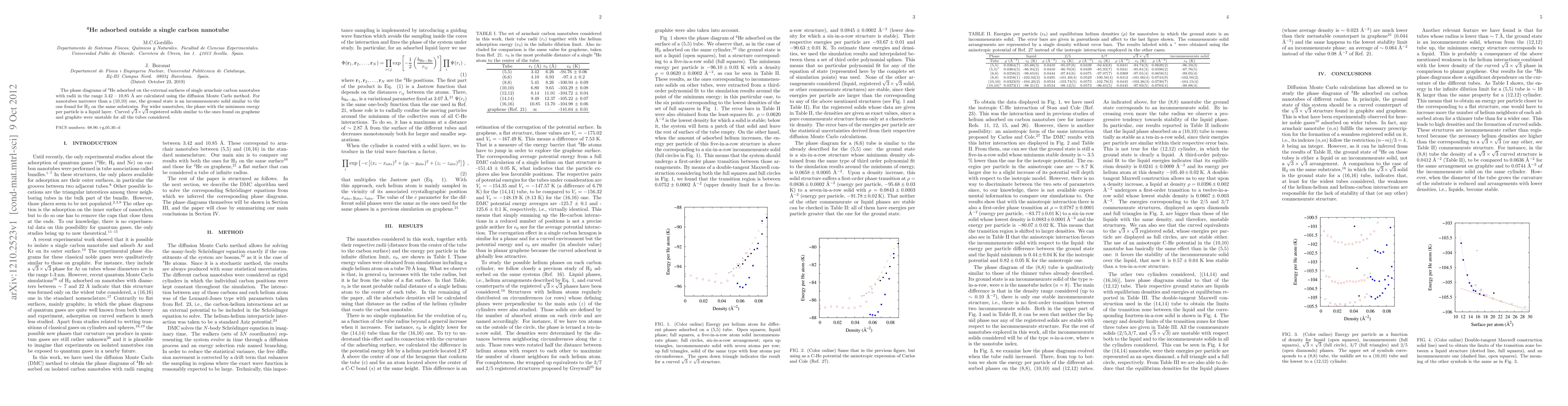 The phase diagrams of $^4$He adsorbed on the external surfaces of single armchair carbon nanotubes with radii in the range 3.42 -- 10.85 \AA \ are calculated using the diffusion Monte Carlo method. For nanotubes narrower than a (10,10) one, the ground state is an incommensurate solid similar to the one found for H$_2$ on the same substrates. For wider nanotubes, the phase with the minimum energy per particle is a liquid layer. Curved $\sqrt 3 \times \sqrt 3$ registered solids similar to the ones found on graphene and graphite were unstable for all the tubes considered.