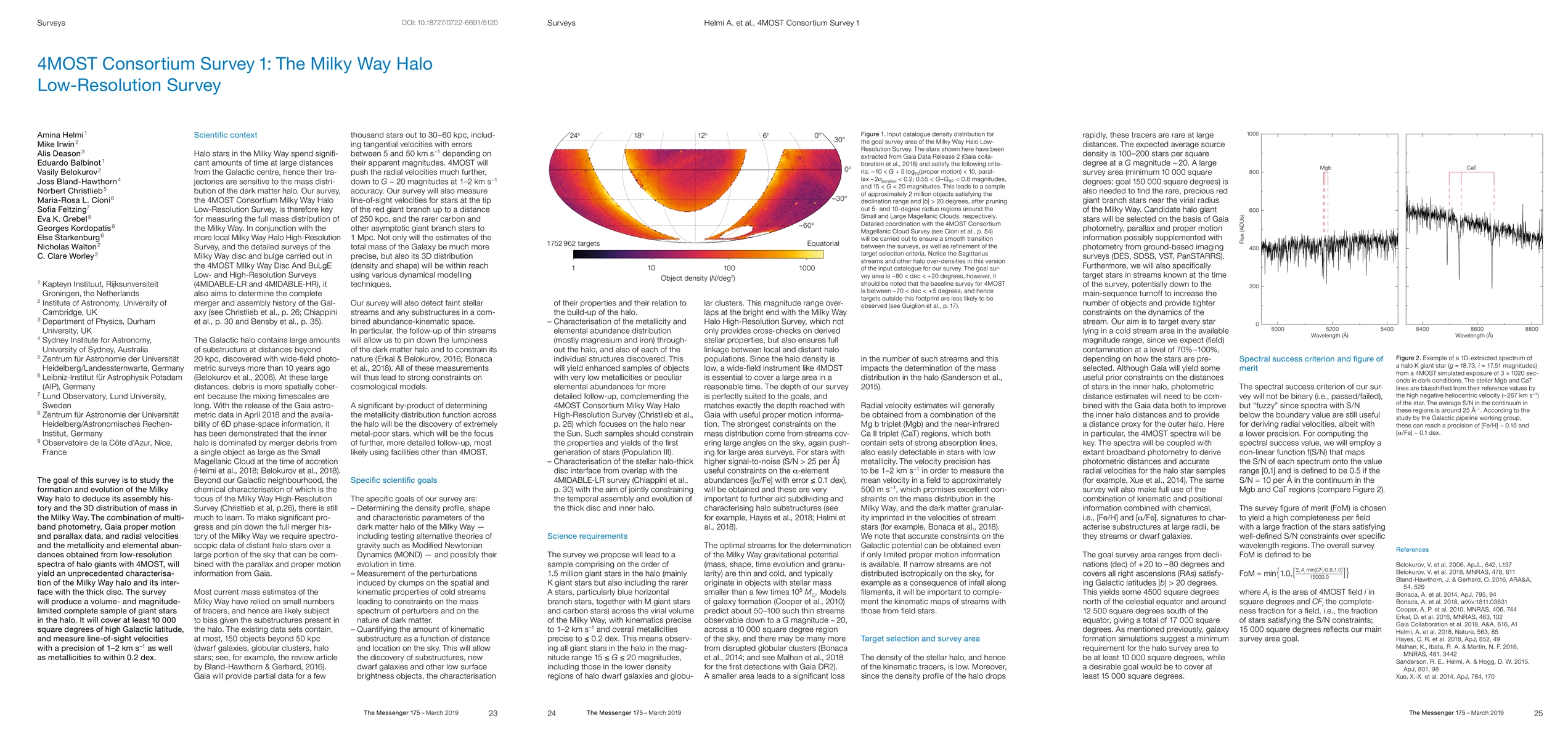 This survey aims to investigate the Milky Way halo's formation and evolution through multi-band photometry, Gaia data, and low-resolution spectra from 4MOST, yielding detailed mass distribution and assembly history. It will cover 10,000 sq. degrees, achieving precise velocity and metallicity measurements.