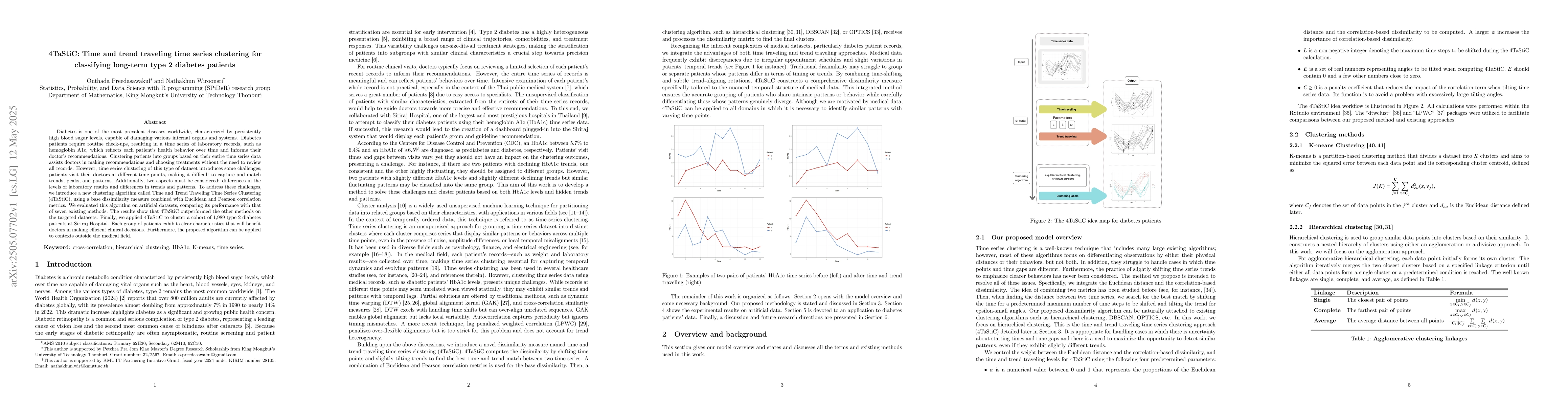 4TaStiC addresses the challenges of clustering time series data from diabetes patients with irregular visit schedules and varying laboratory results, outperforming existing methods and demonstrating potential for broader applications.