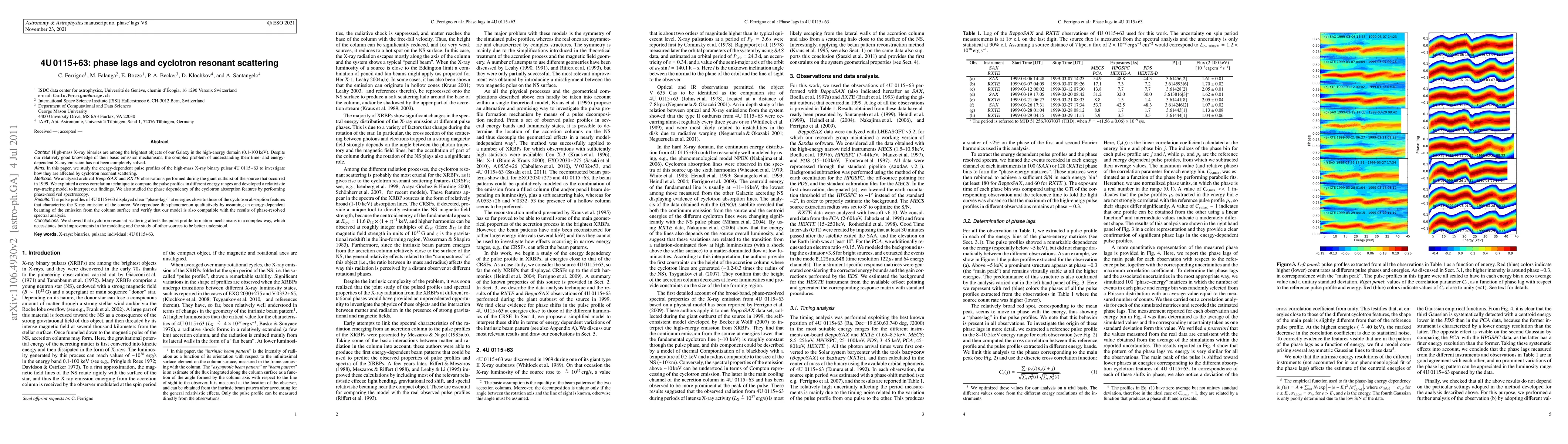 Researchers studied the X-ray binary pulsar 4U 0115+63 to understand how cyclotron resonant scattering affects its pulse profiles, finding phase-lags at energies close to absorption features that characterize the source's emission.