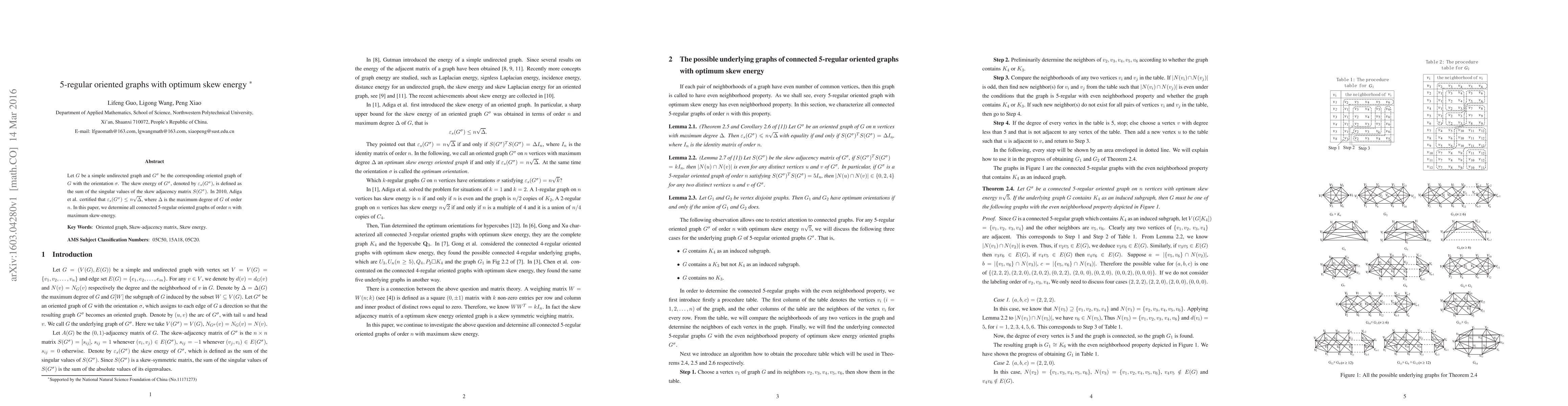 The paper presents a detailed proof and classification of 5-regular oriented graphs with maximum skew energy, extending previous work by Adiga et al. (2010) and providing a thorough analysis of their structural properties.