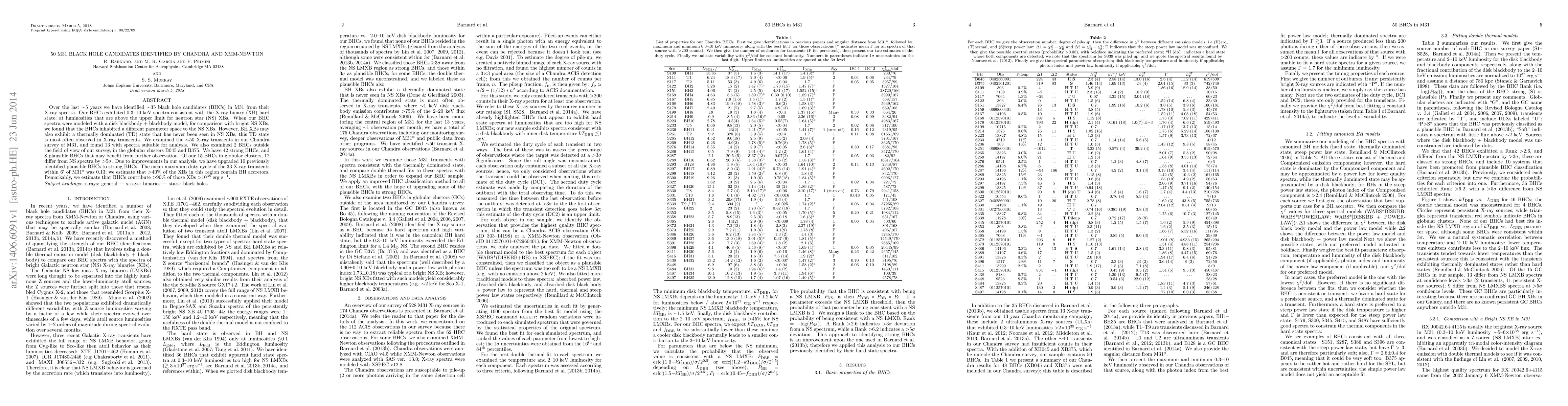 Over the last ~5 years we have identified ~35 black hole candidates (BHCs) in M31 from their X-ray spectra. Our BHCs exhibited 0.3--10 keV spectra consistent with the X-ray binary (XB) hard state, at luminosities that are above the upper limit for neutron star (NS) XBs. When our BHC spectra were modeled with a disk blackbody + blackbody model, for comparison with bright NS XBs, we found that the BHCs inhabited a different parameter space to the NS XBs. However, BH XBs may also exhibit a thermally dominated (TD) state that has never been seen in NS XBs; this TD state is most often observed in X-ray transients. We examined the ~50 X-ray transients in our Chandra survey of M31, and found 13 with spectra suitable for analysis. We also examined 2 BHCs outside the field of view of our survey, in the globular clusters B045 and B375. We have 42 strong BHCs, and 8 plausible BHCs that may benefit from further observation. Of our 15 BHCs in globular clusters, 12 differ from NS spectra by >5 sigma. Due to improvements in our analysis, we have upgraded 10 previously identified plausible BHCs to strong BHCs. The mean maximum duty cycle of the 33 X-ray transients within 6' of M31* was 0.13; we estimate that >40% of the XBs in this region contain BH accretors. Remarkably, we estimate that BHCs contribute >90% of those XBs >1 E+38 erg/s.