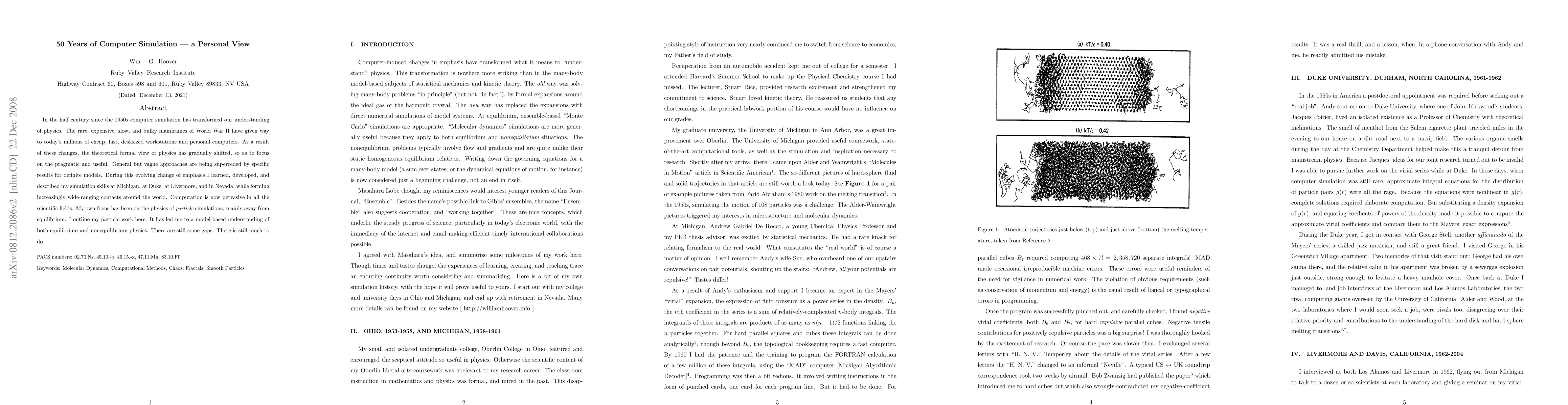 This paper reflects on the transformative impact of computer simulation on physics over the past 50 years, highlighting the evolution from large mainframes to modern personal computers, and the author's personal journey in developing particle simulation skills and contributing to both equilibrium and nonequilibrium physics. Despite significant progress, the author acknowledges remaining gaps and ongoing challenges in the field.
