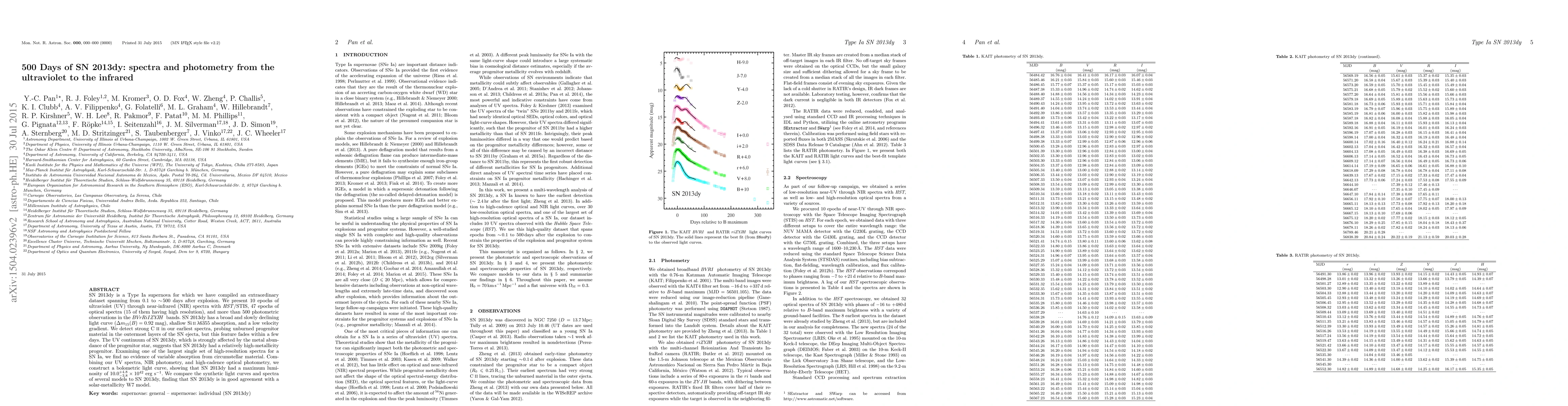 This study presents a comprehensive dataset for SN 2013dy, a Type Ia supernova, with extensive photometry and spectra from 0.1 to 500 days after explosion. The data reveals a broad light curve and suggests that the supernova had a relatively high-metallicity progenitor.