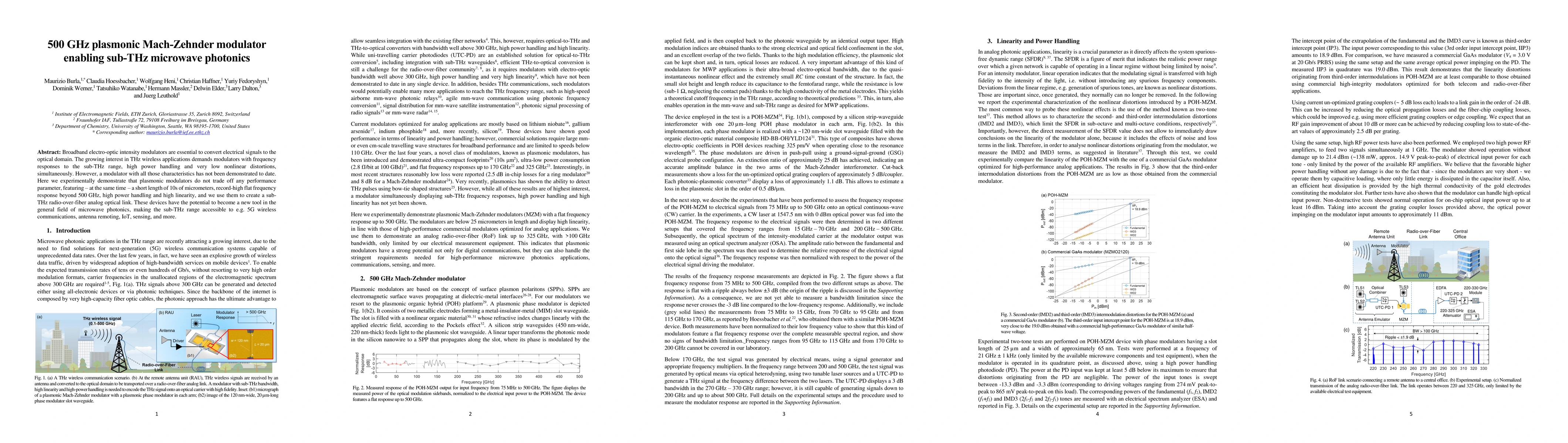 The research demonstrates a plasmonic Mach-Zehnder modulator achieving a record-high frequency response beyond 500 GHz, high power handling, and low nonlinear distortions, potentially revolutionizing sub-THz microwave photonics applications like 5G and IoT.