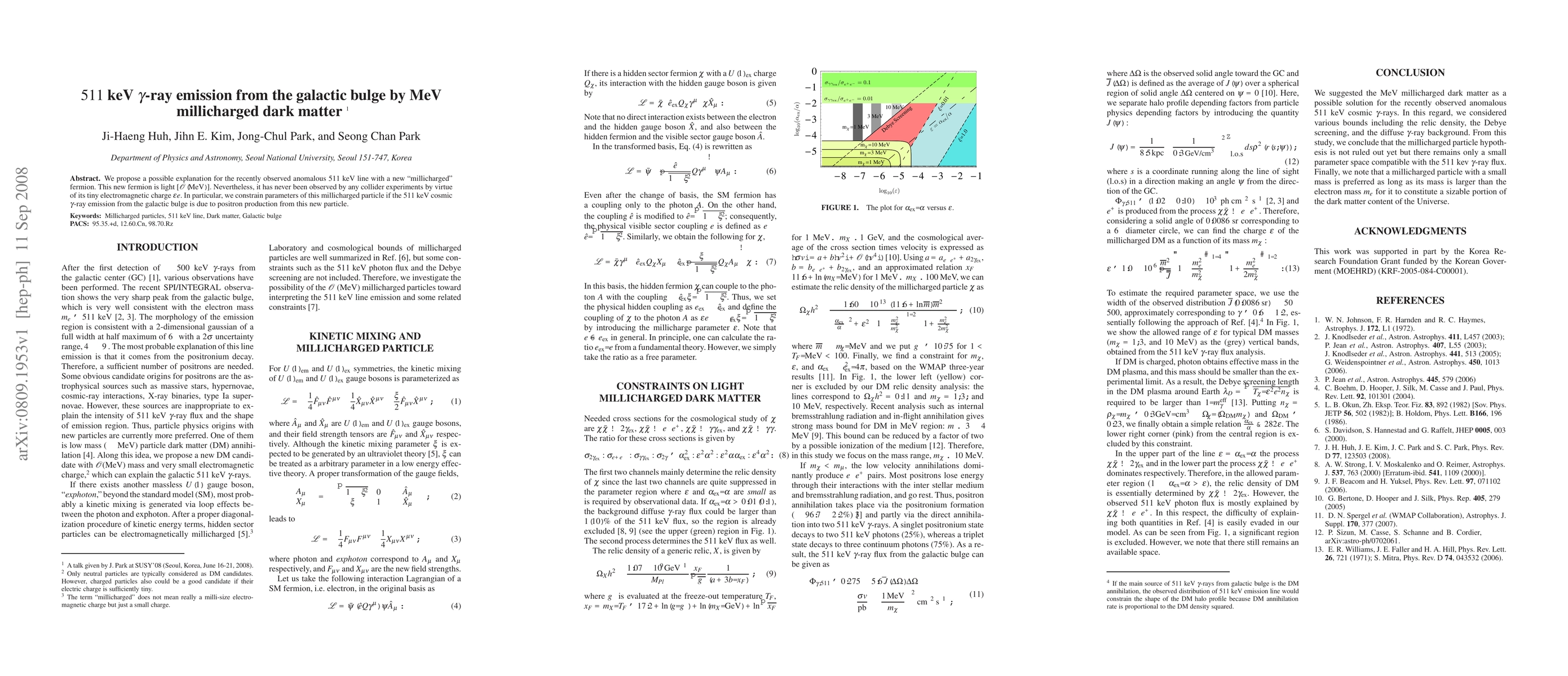 This paper proposes a new "millicharged" fermion as a potential explanation for the observed 511 keV gamma-ray line from the galactic bulge, suggesting that this light MeV particle could produce positrons through its tiny electromagnetic charge. The study constrains the parameters of this hypothetical particle based on its role in gamma-ray emission.