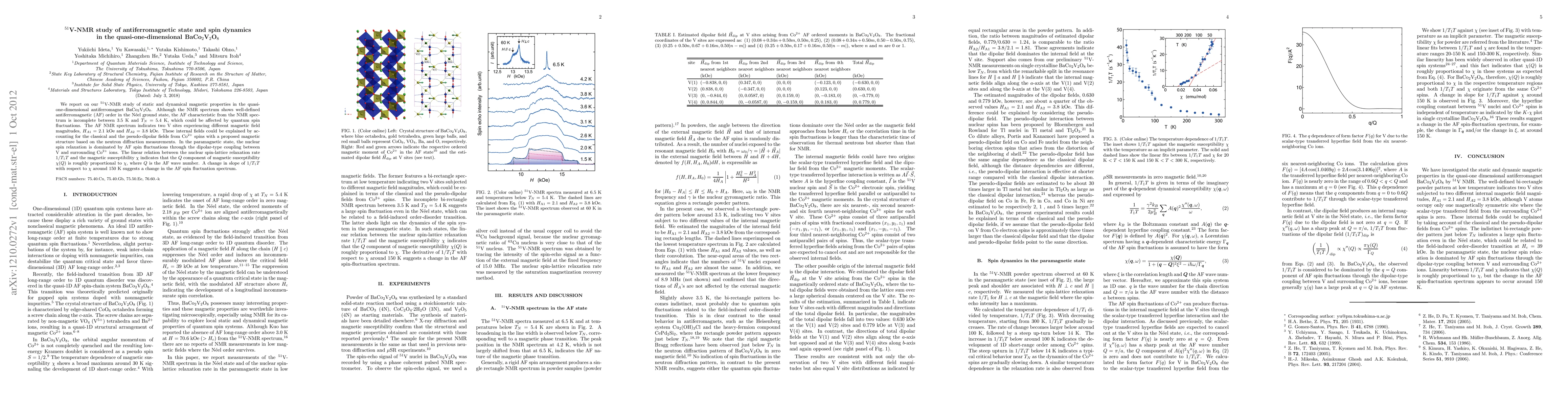 We report on our 51V-NMR study of static and dynamical magnetic properties in the quasi-one-dimensional antiferromagnet BaCo2V2O8. Although the NMR spectrum shows well-defined antiferromagnetic (AF) order in the N\'eel ground state, the AF characteristic from the NMR spectrum is incomplete between 3.5 K and TN= 5.4 K, which could be affected by quantum spin fluctuations. The AF NMR spectrum indicates two V sites experiencing different magnetic field magnitudes, HA1=2.1 kOe and HA2=3.8 kOe. These internal fields could be explained by accounting for the classical and the pseudo-dipolar fields from Co2+ spins with a proposed magnetic structure based on the neutron diffraction measurements. In the paramagnetic state, the nuclear spin relaxation is dominated by AF spin fluctuations through the dipolar-type coupling between V and surrounding Co2+ ions. The linear relation between the nuclear spin-lattice relaxation rate 1/T1T and the magnetic susceptibility chi indicates that the Q component of magnetic susceptibility chi(Q) is roughly proportional to chi, where Q is the AF wave number. A change in slope of 1/T1T with respect to \chi around 150 K suggests a change in the AF spin fluctuation spectrum.