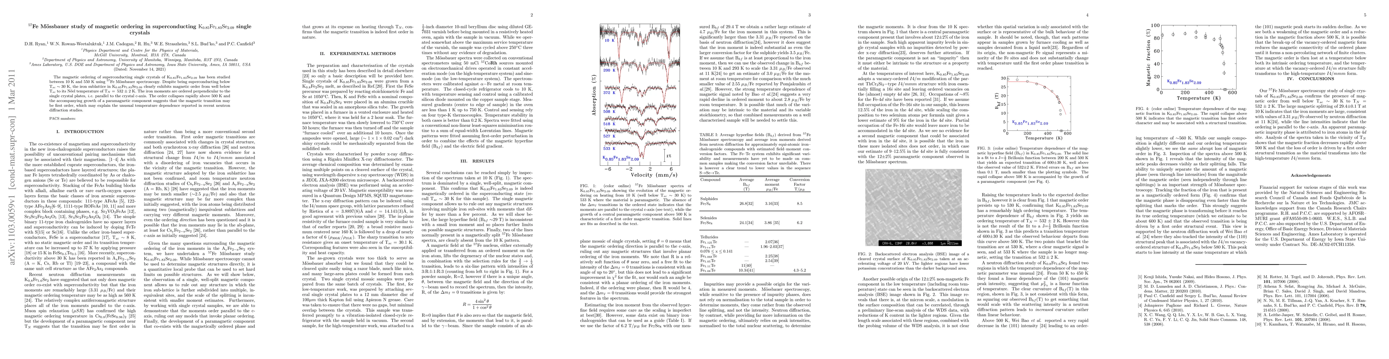 The magnetic ordering of superconducting single crystals of K_0.85Fe_1.83Se_2.09 has been studied between 10K and 550K using 57-Fe Mossbauer spectroscopy. Despite being superconducting below T_sc ~30K, the iron sublattice in K_0.85Fe_1.83Se_2.09 clearly exhibits magnetic order from well below T_sc to its N\'eel temperature of T_N = 532 +/- 2K. The iron moments are ordered perpendicular to the single crystal plates, i.e. parallel to the crystal c-axis. The order collapses rapidly above 500K and the accompanying growth of a paramagnetic component suggests that the magnetic transition may be first order, which may explain the unusual temperature dependence reported in recent neutron diffraction studies.