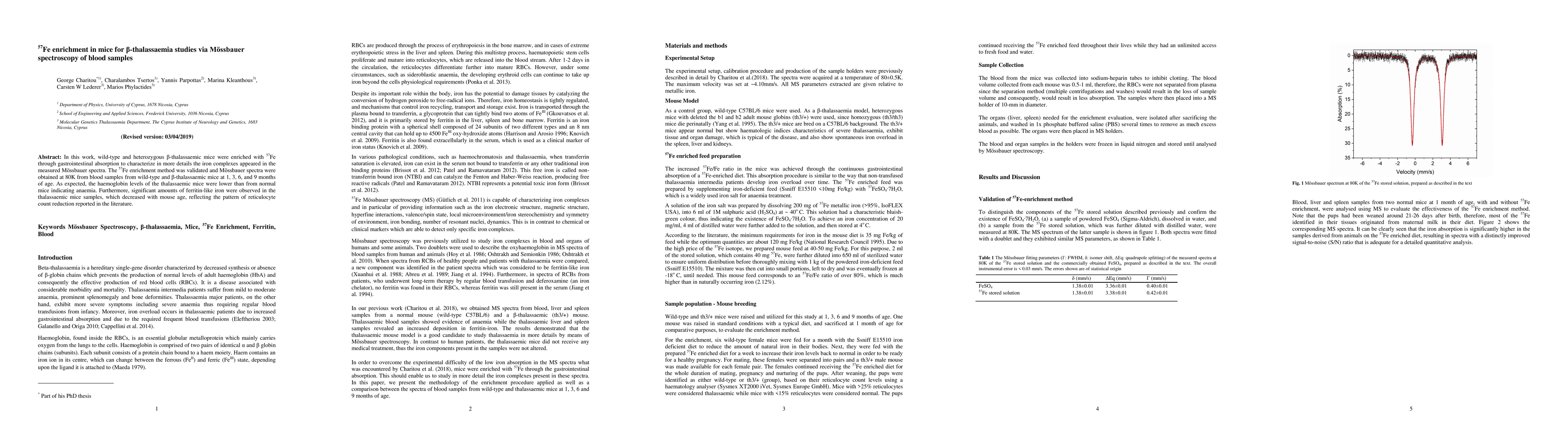 Researchers developed a method to enrich mice with 57Fe to study beta-thalassaemia using Mossbauer spectroscopy, revealing lower hemoglobin levels and increased ferritin-like iron in thalassemic mice, which decreased with age.