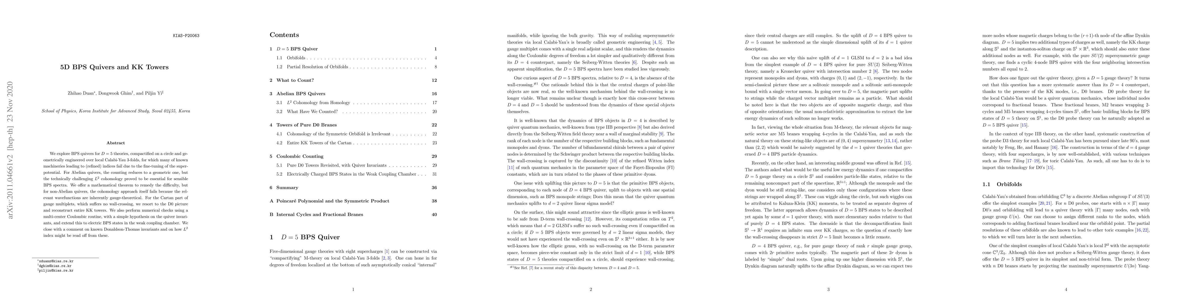 This paper investigates BPS quivers in D=5 theories compactified on circles and engineered over local Calabi-Yau 3-folds, employing $L^2$ cohomology for Abelian quivers and D0 picture for non-Abelian ones to reconstruct KK towers, with numerical checks supporting the theoretical framework.