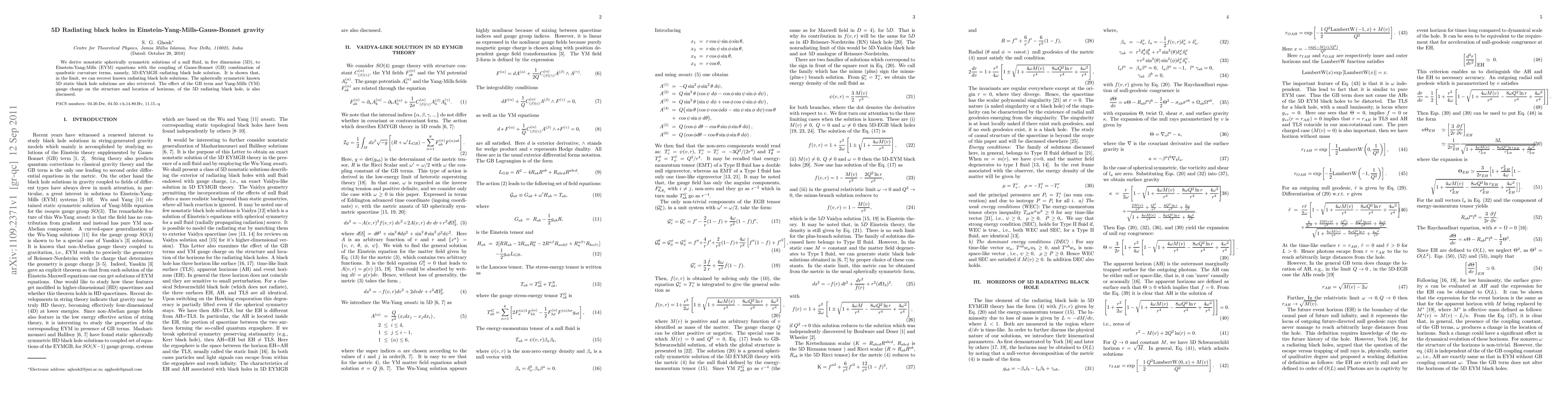 This paper presents nonstatic spherically symmetric solutions for 5D radiating black holes within Einstein-Yang-Mills-Gauss-Bonnet gravity, showing the influence of Gauss-Bonnet and Yang-Mills terms on horizon structure and location, and recovering known static and radiating black hole solutions.