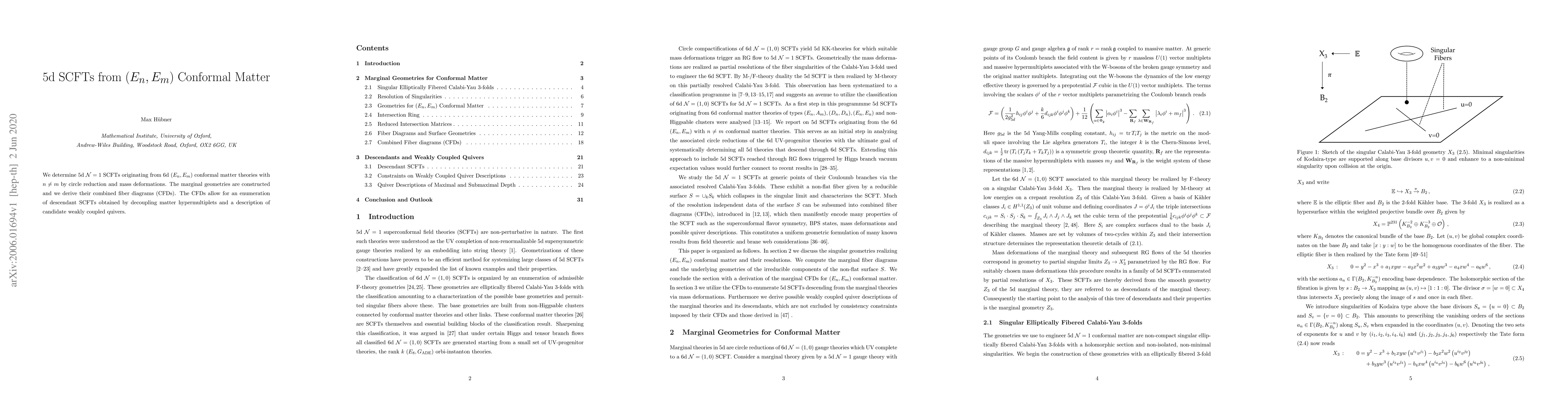Researchers developed 5d SCFTs from 6d $(E_n,E_m)$ conformal matter theories using circle reduction and mass deformations. They constructed marginal geometries and derived combined fiber diagrams to enumerate descendant SCFTs.